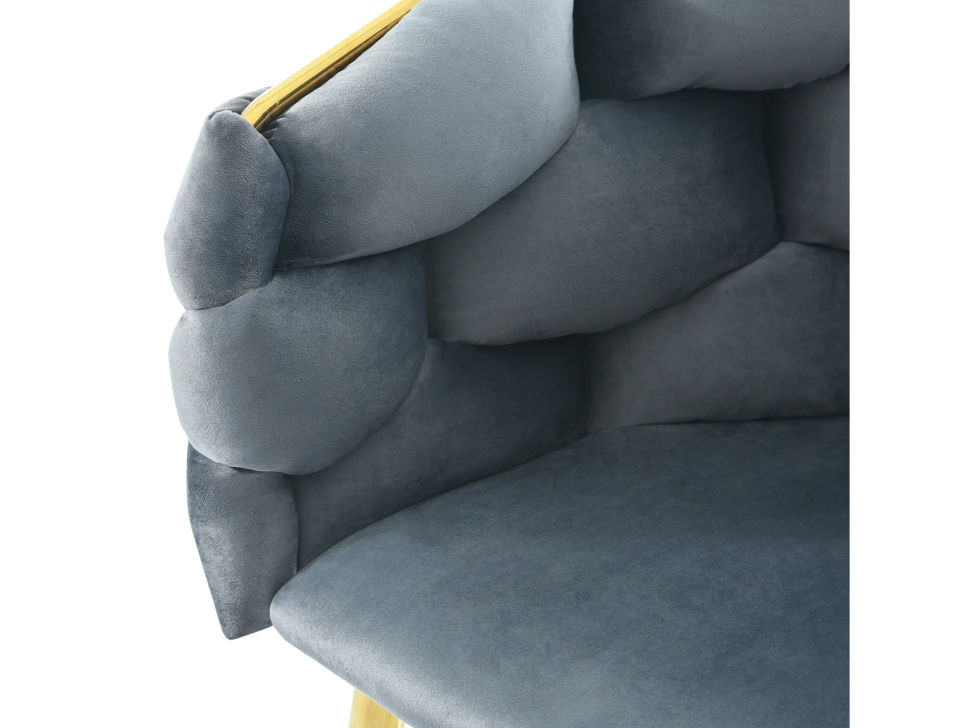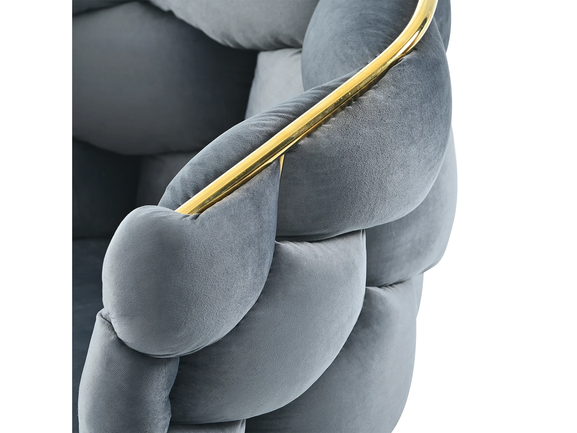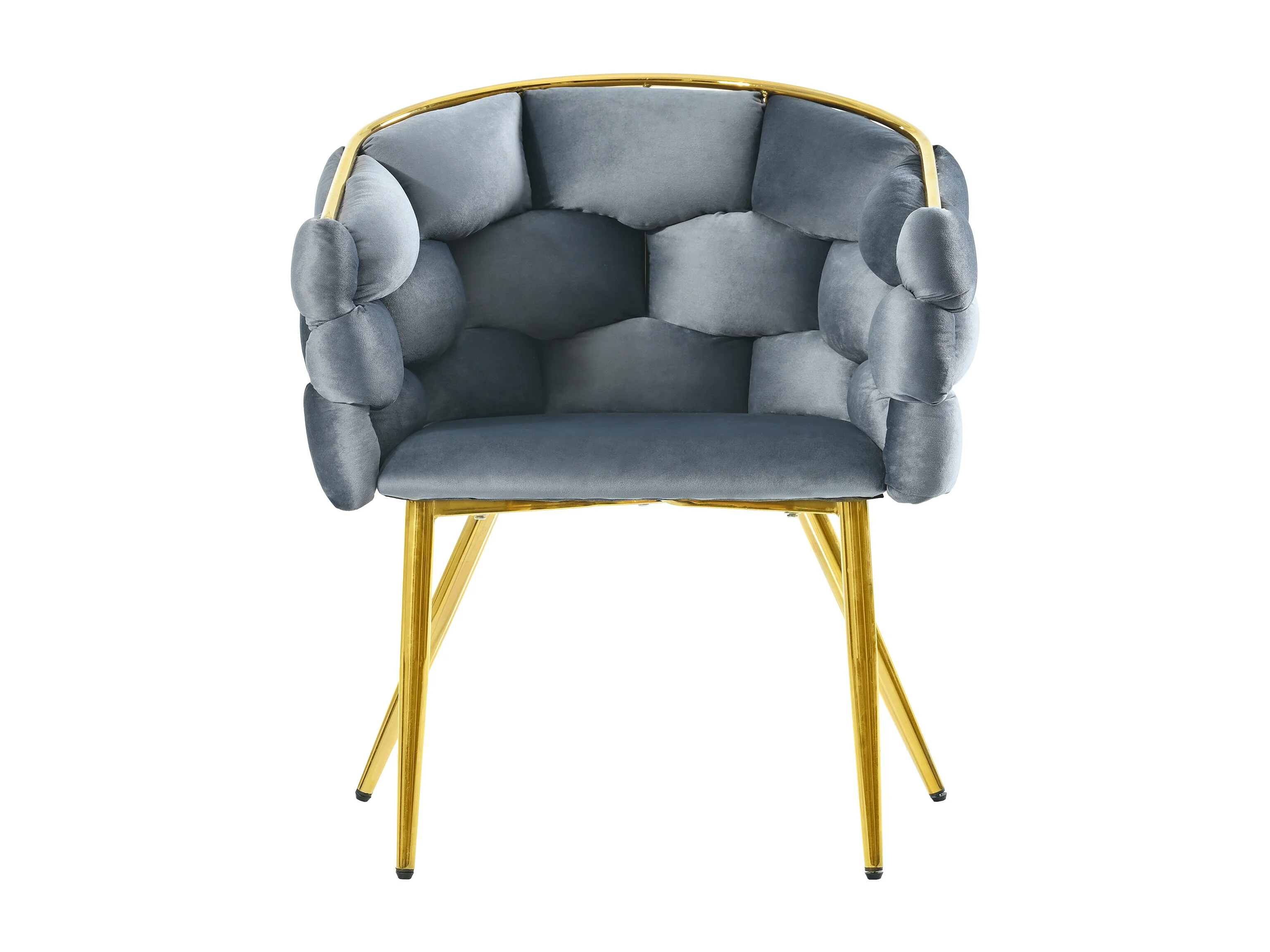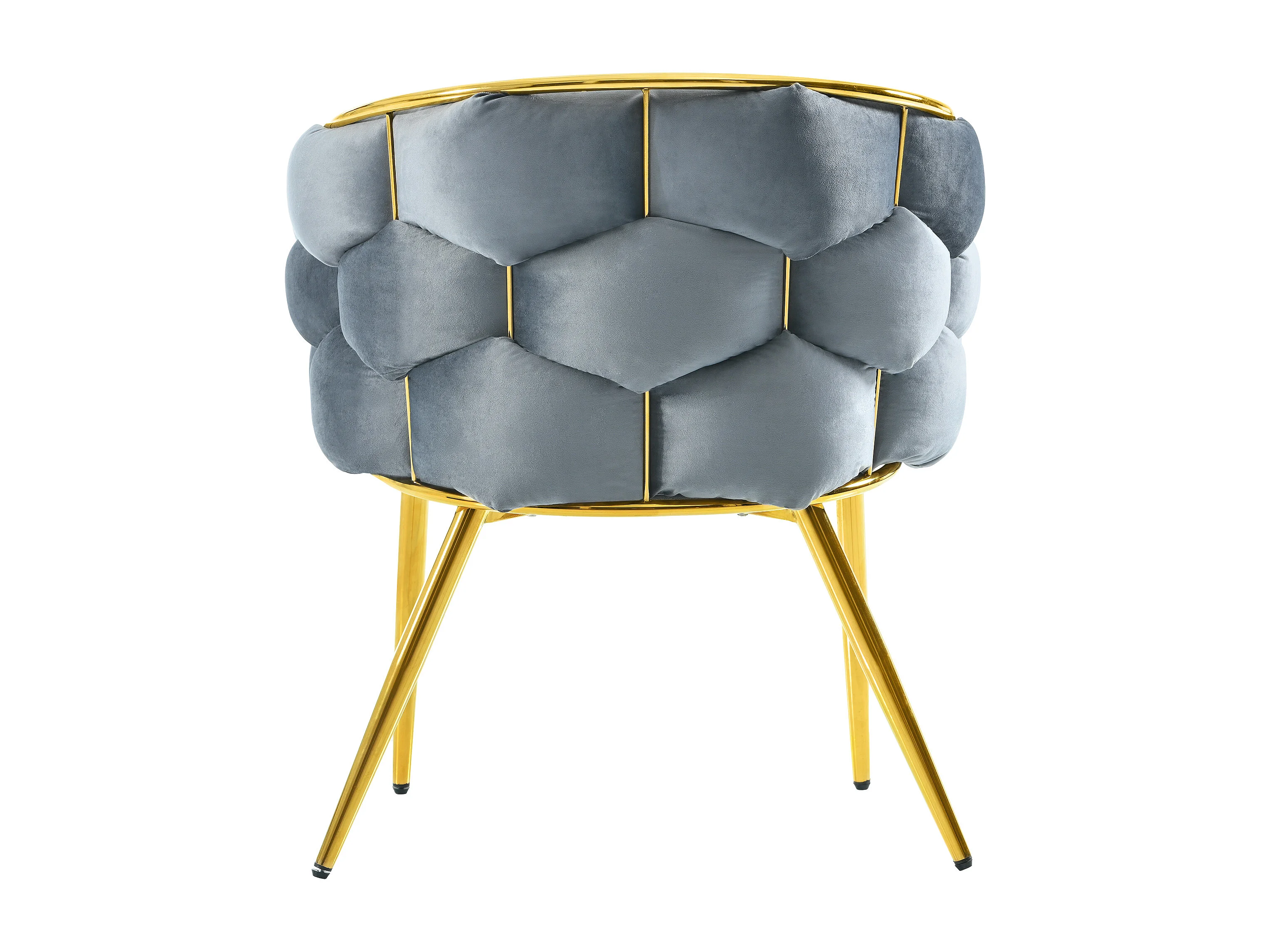 Chaise en velours avec dossier rembourré et accoudoirs - pieds en métal doré - gris