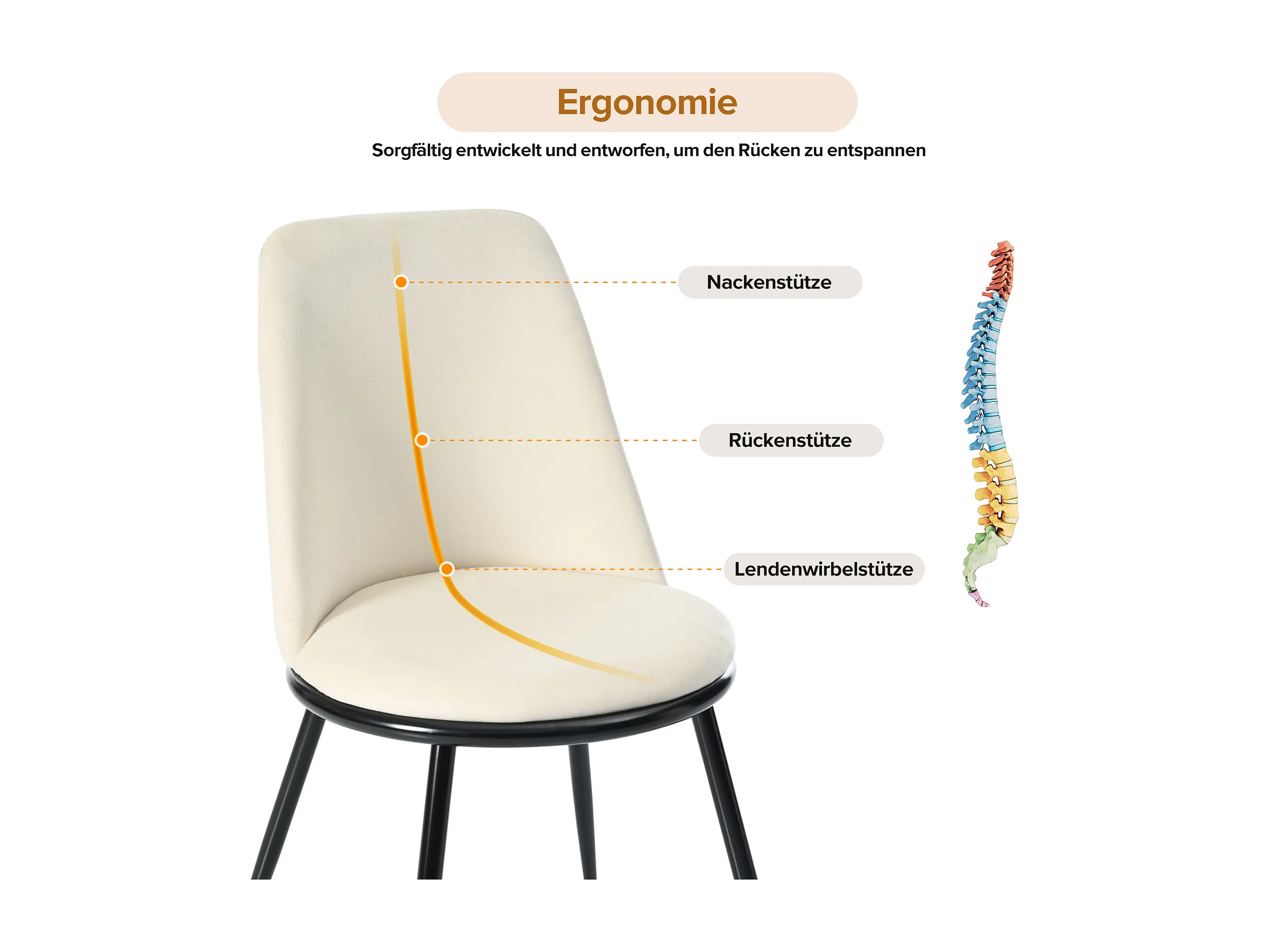 Chaise En Velours Avec Dossier Rond, Cadre En Métal, Lot De 4 Chaises Couleur Beige