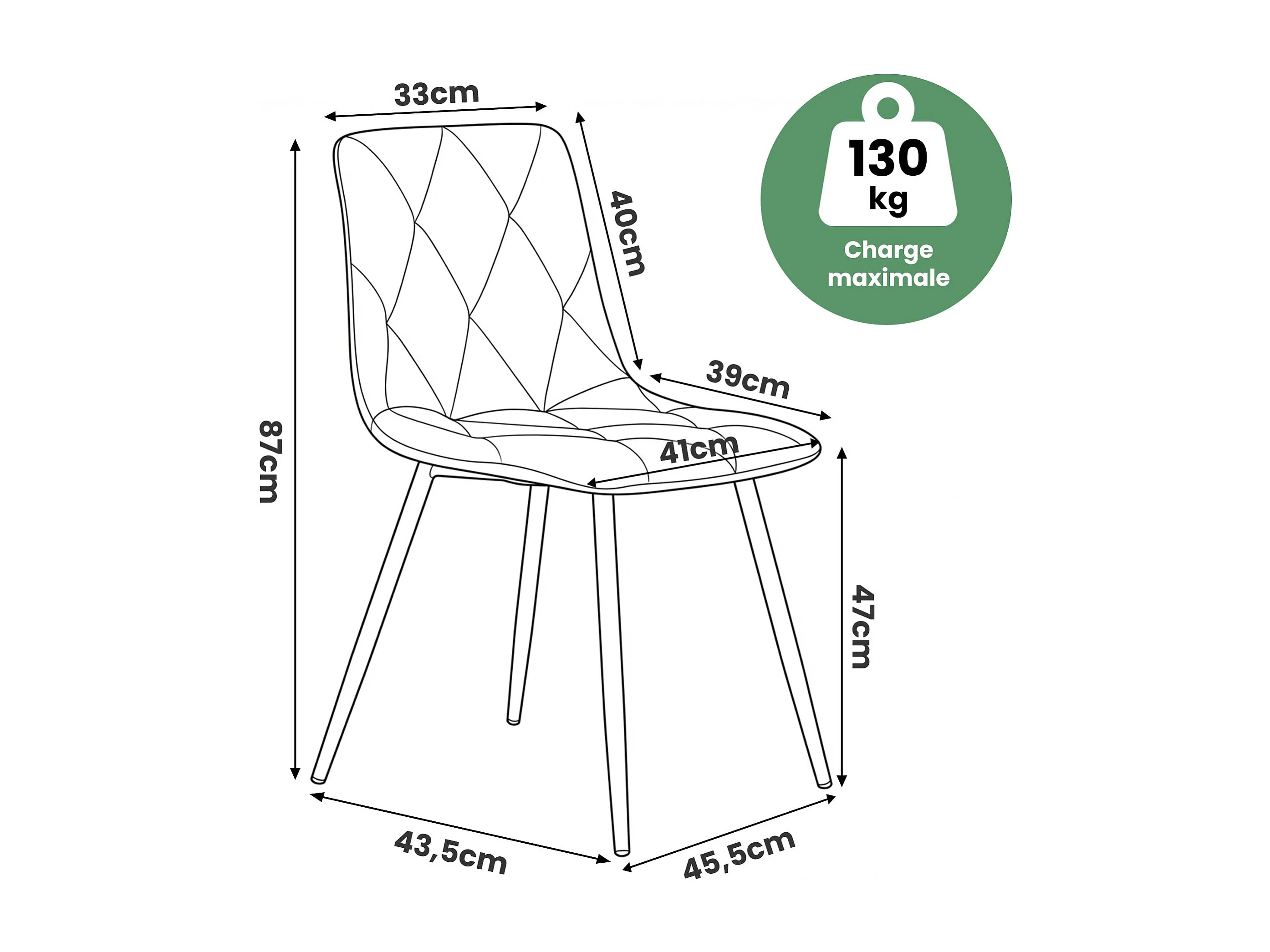 Chaise en velours matelassée MILO Graphite Foncé pieds noirs