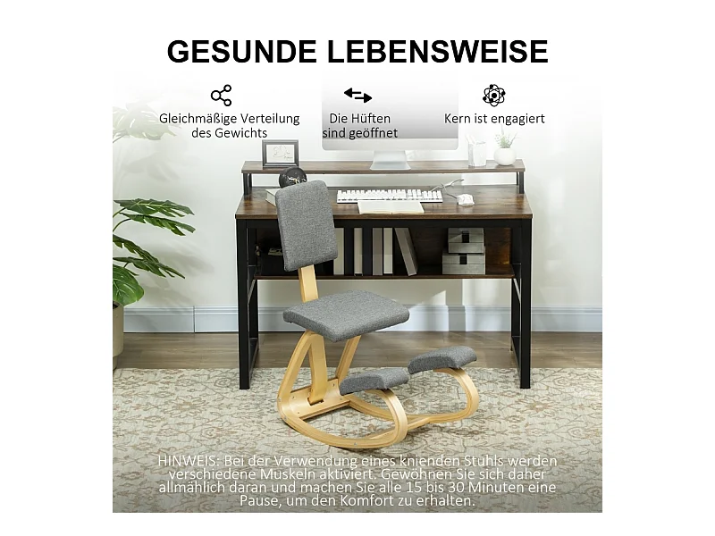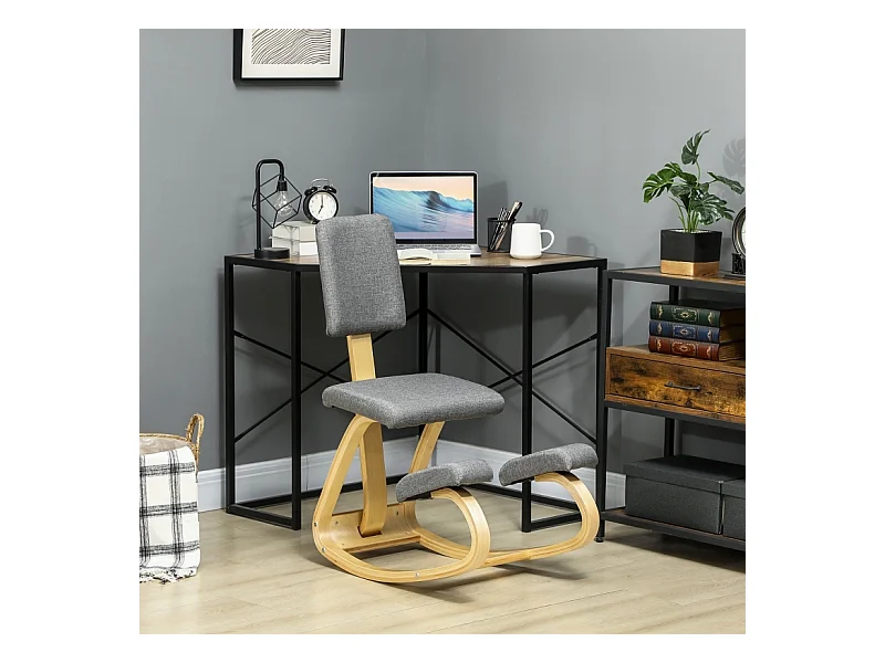 Chaise ergonomique à genoux, tabouret rembourré pour posture saine, bois de bouleau, supporte jusqu'à 120 kg, confortable, gris