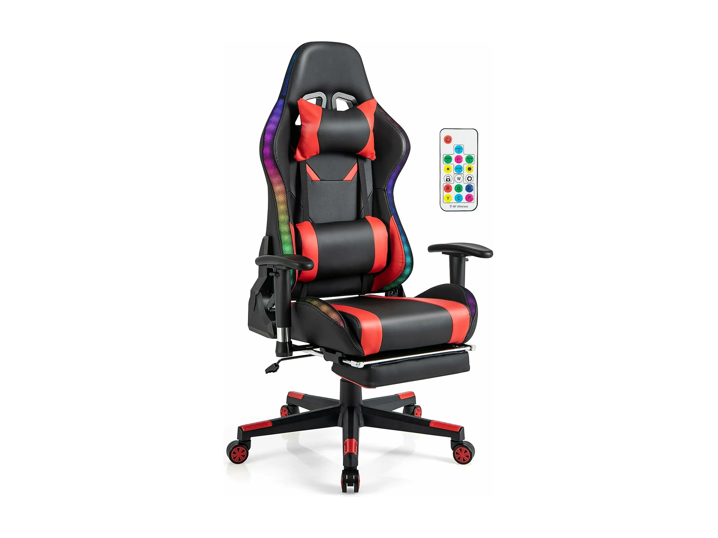 Chaise Gaming RGB/LED, Chaise Gamer Ergonomique avec Soutien Lombaire, Fauteuil Gamer avec Accoudoir Réglable, Appui-tête (Rouge)