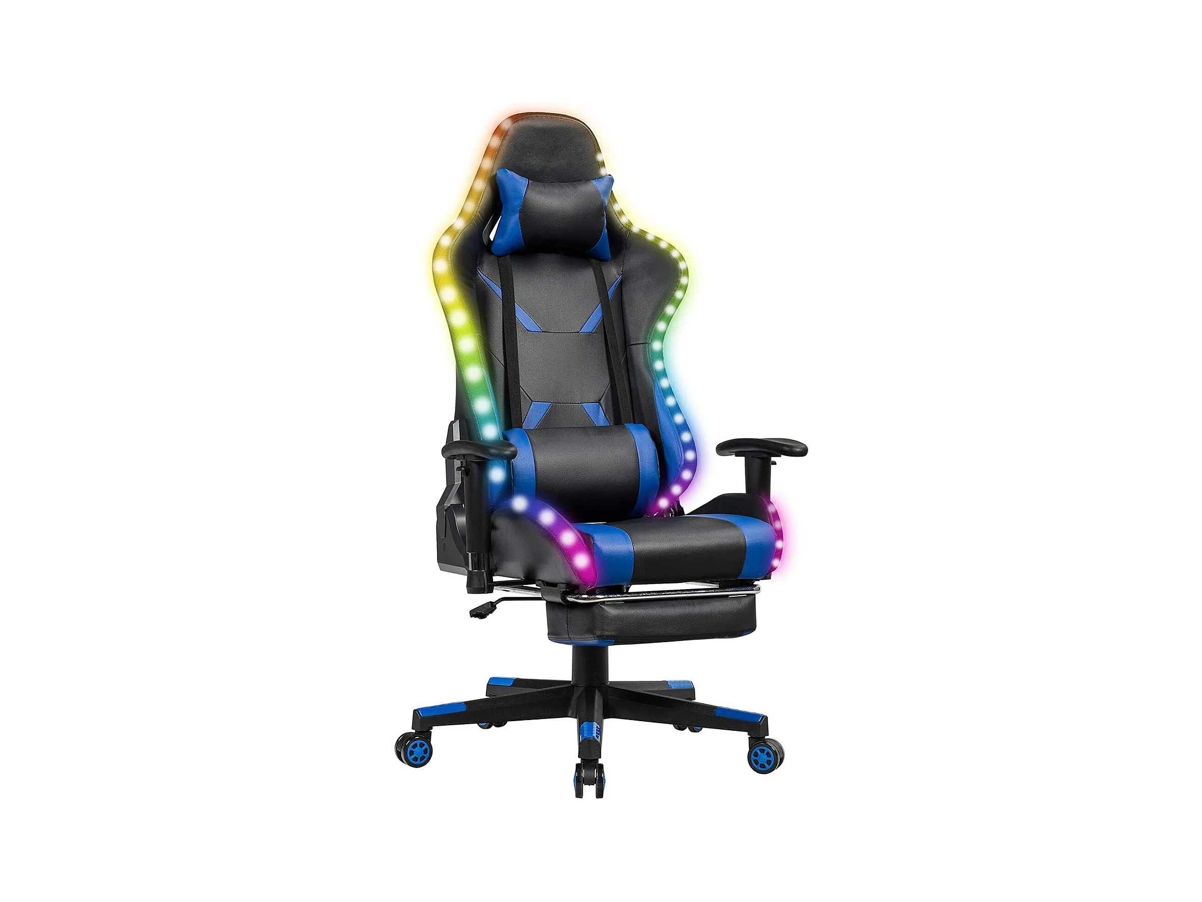 Chaise Gaming RVB , Fauteuil Gamer Éclairage LED 358 Effets en PU avec Dossier, Hauteur et Repose Pieds Réglable Bleu