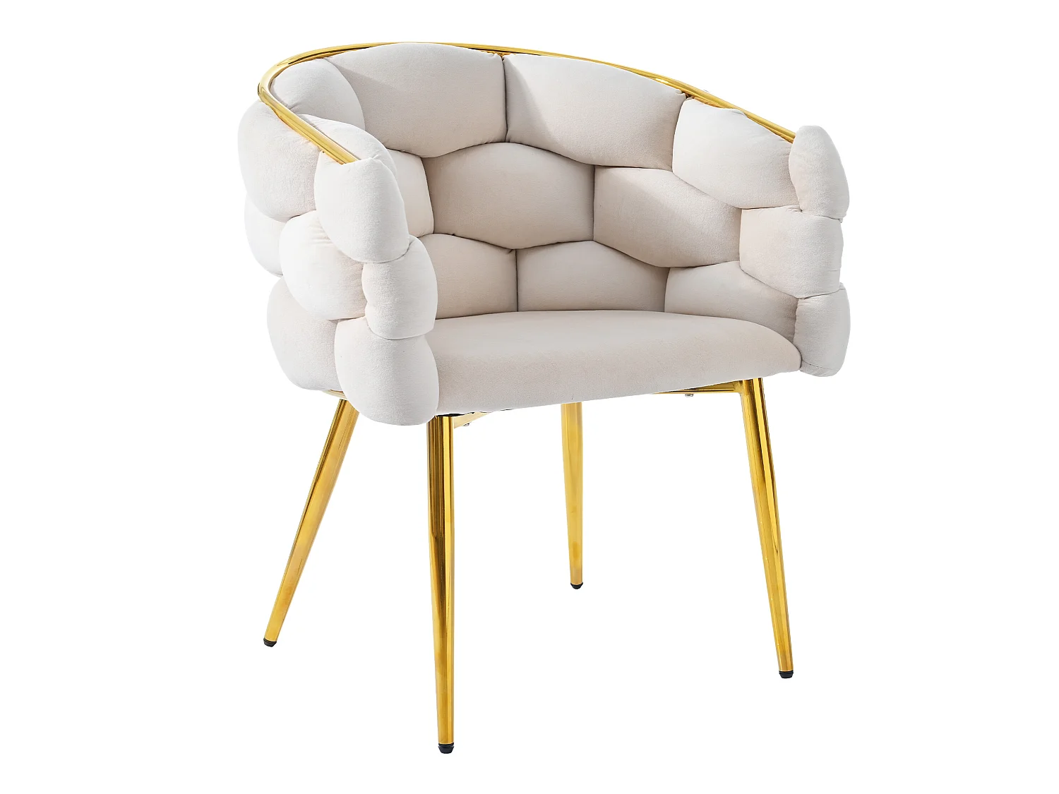 1 Chaise en velours - avec dossier en forme de pétale - pieds en métal doré - Beige