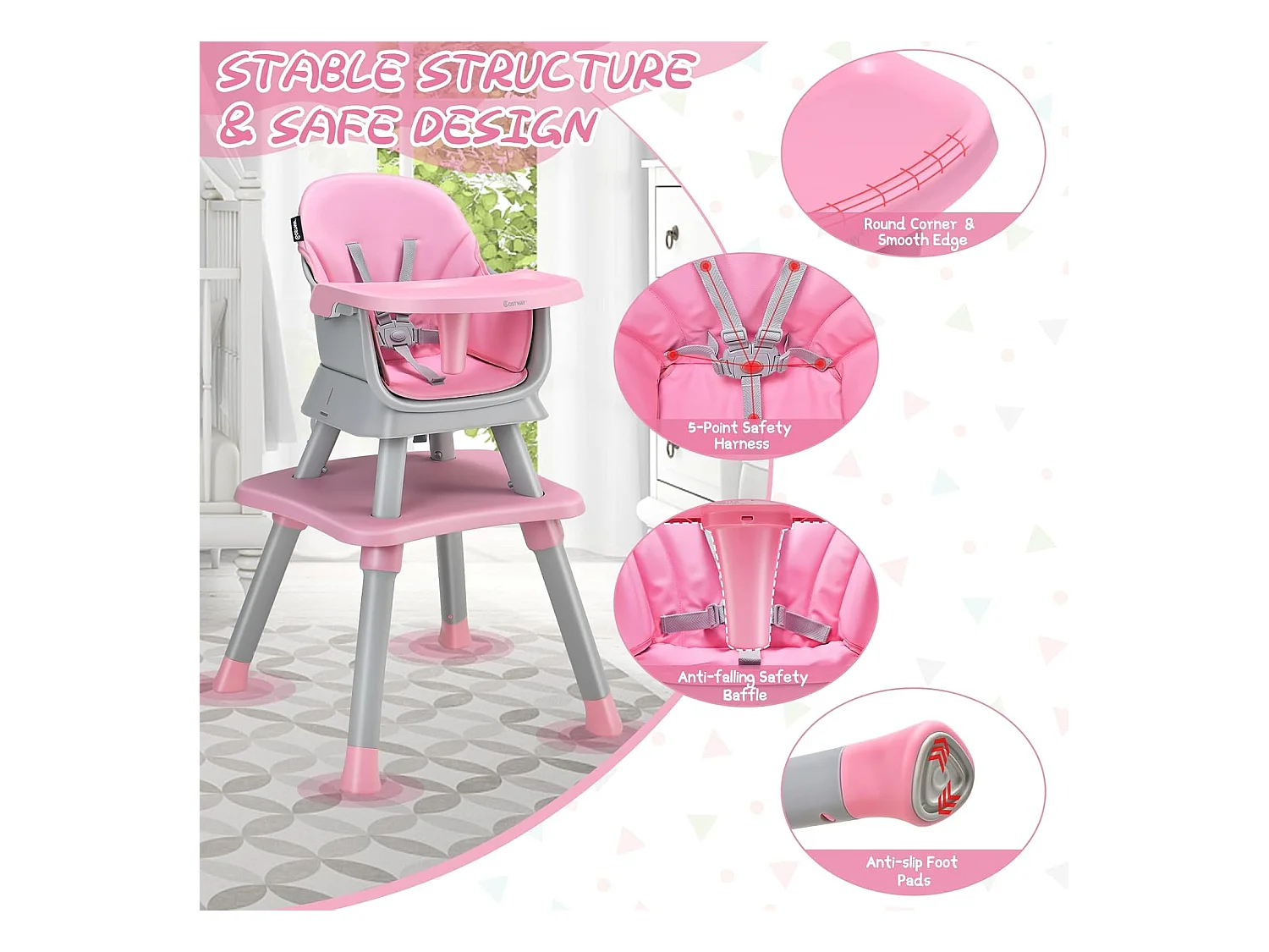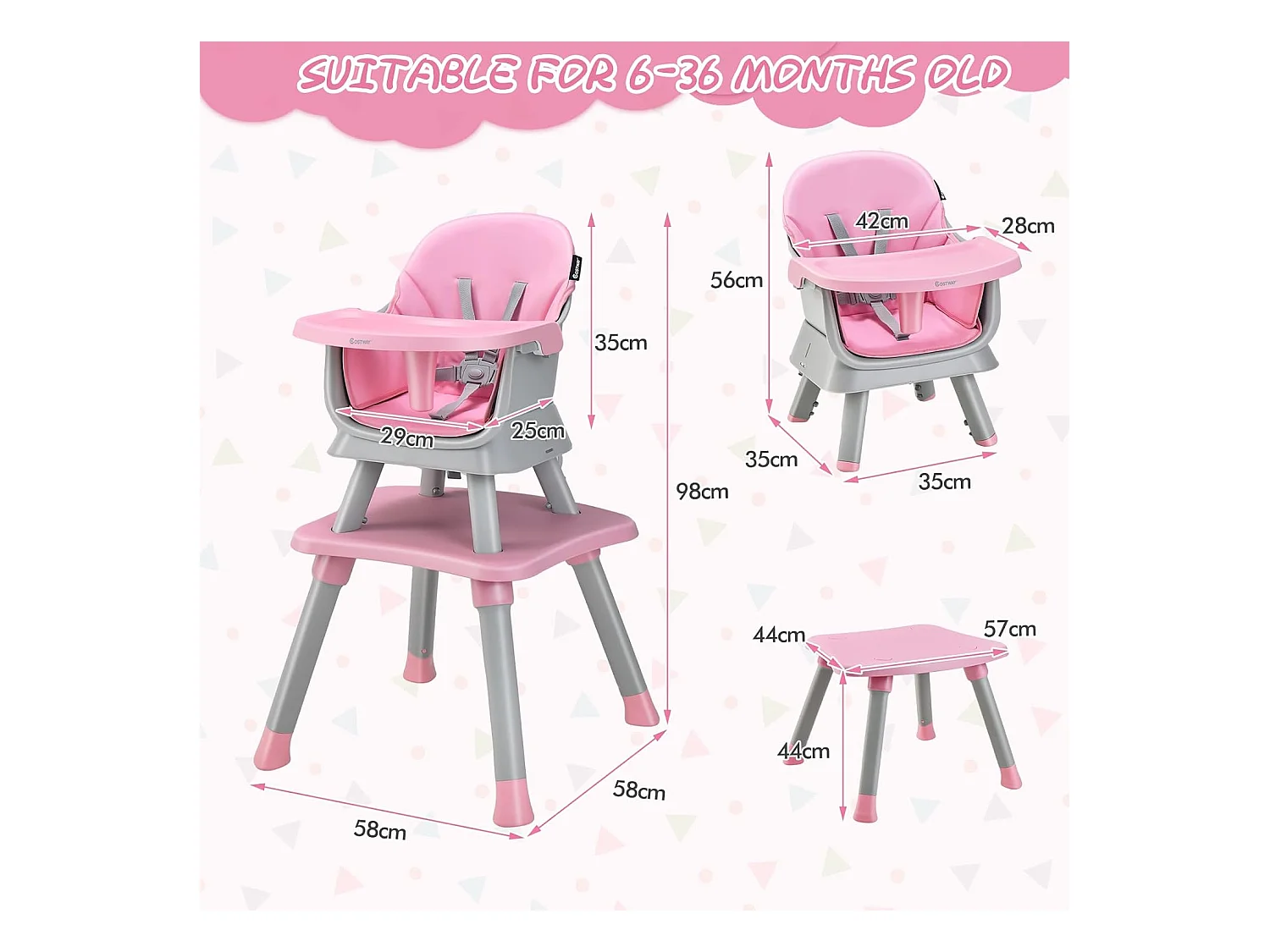 Chaise Haute Bébé Evolutive 6 en 1 avec Plateau Blocs de Construction Amovible Harnais à 5 Points,Charge 25kg,6-36 Mois Rose