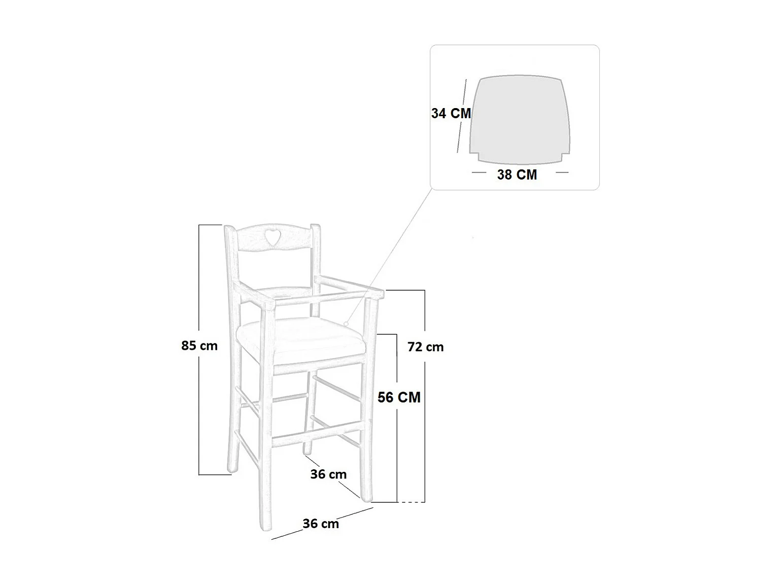 Chaise haute en bois de cerisier avec assise rembourrée en simili cuir marron