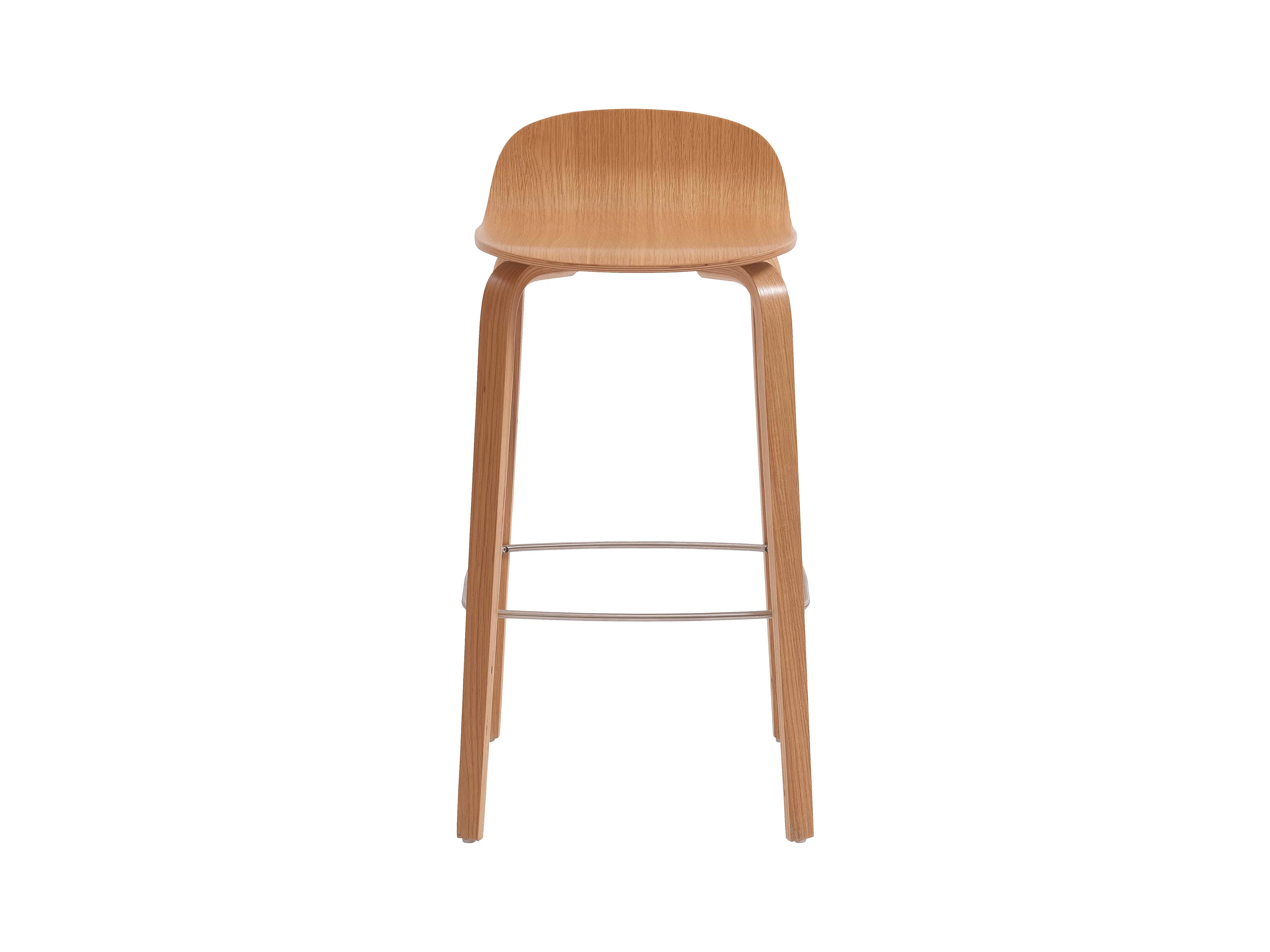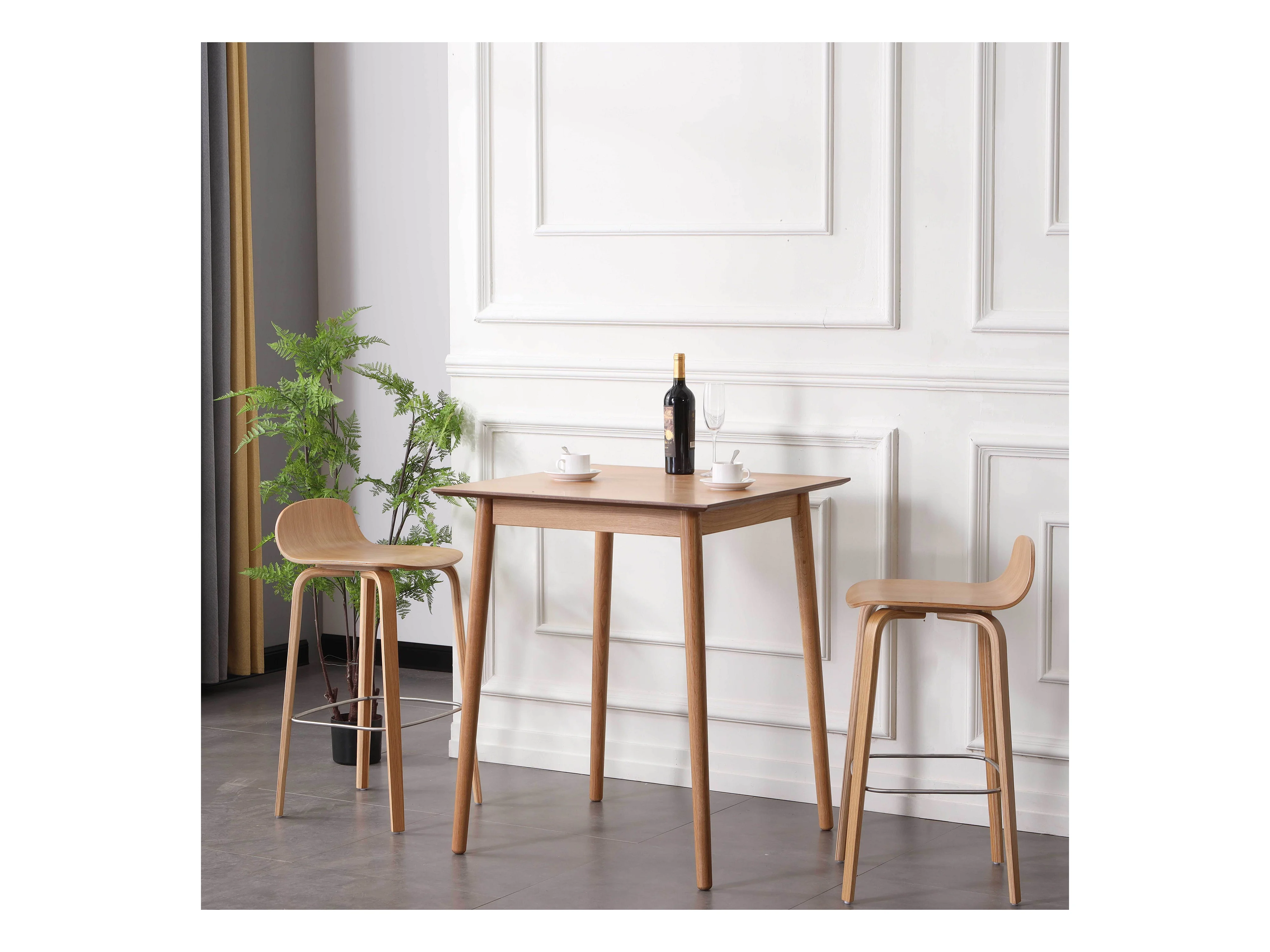 Tabouret de bar haut en bois h 67cm avec assise en noyer clair massif