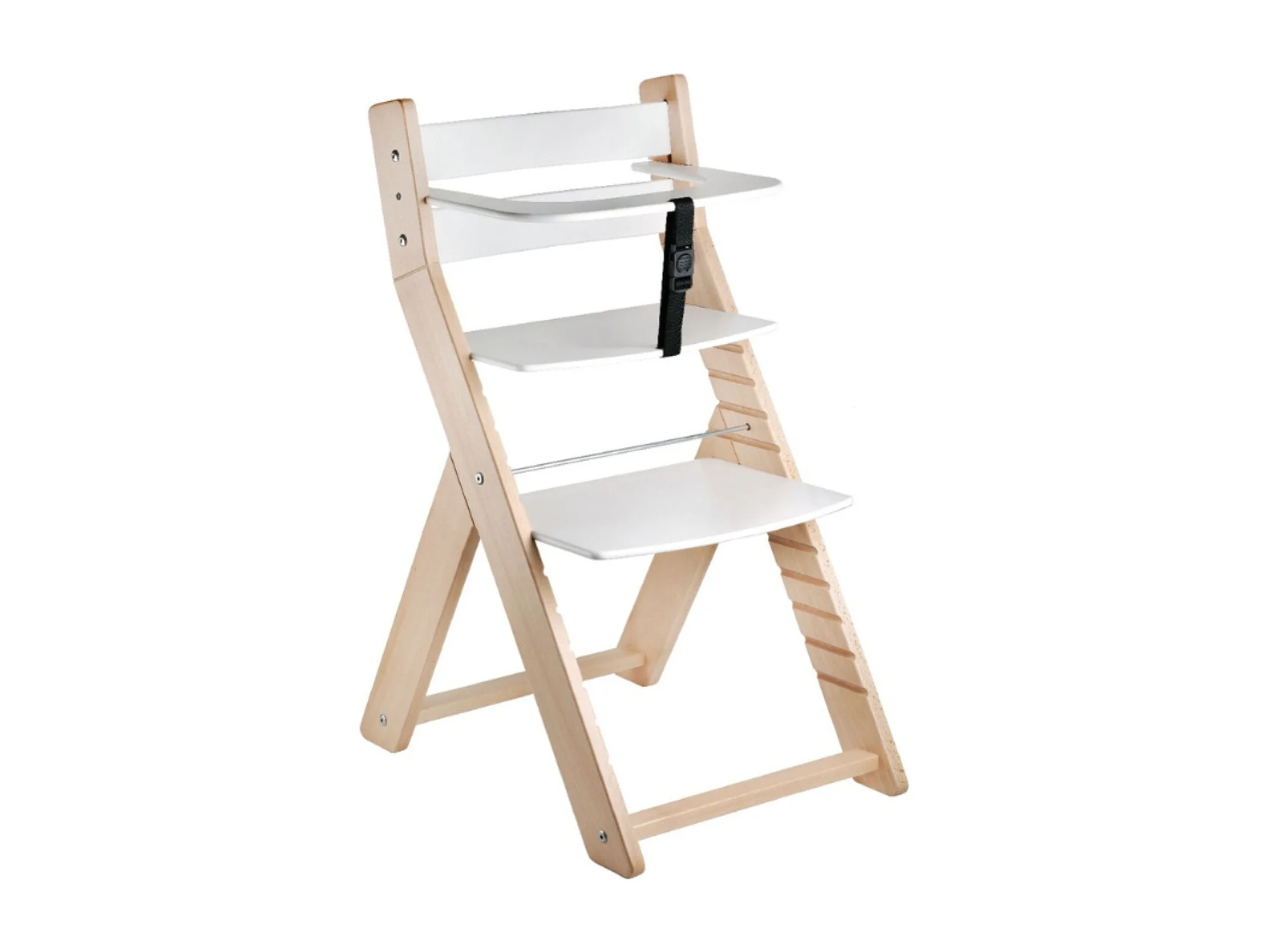 Chaise haute en bois blanc avec assise en éco-cuir beige