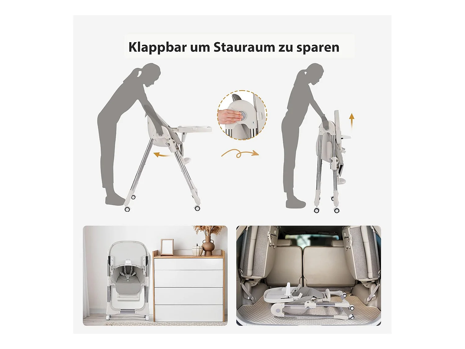 Chaise haute pliante pour enfants OUNUO avec ceinture de sécurité et coussin en simili cuir, 6 mois à 6 ans, Gris