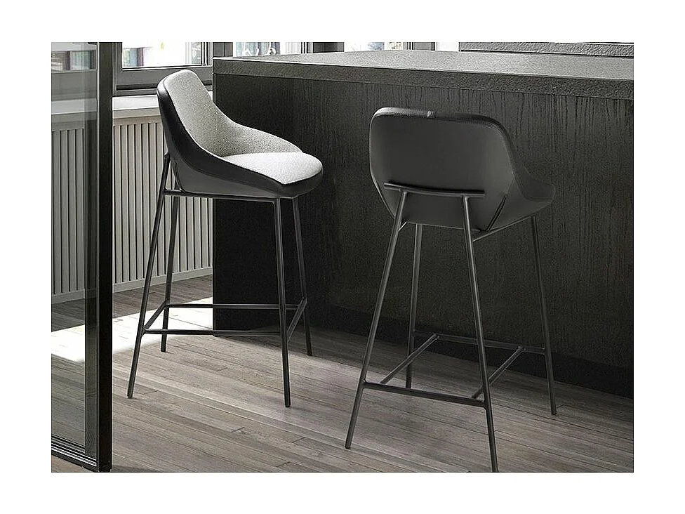 Chaise haute tissu et cuir éco et pieds acier Pino - Lot de 2-Couleur Aqua 04 Beige