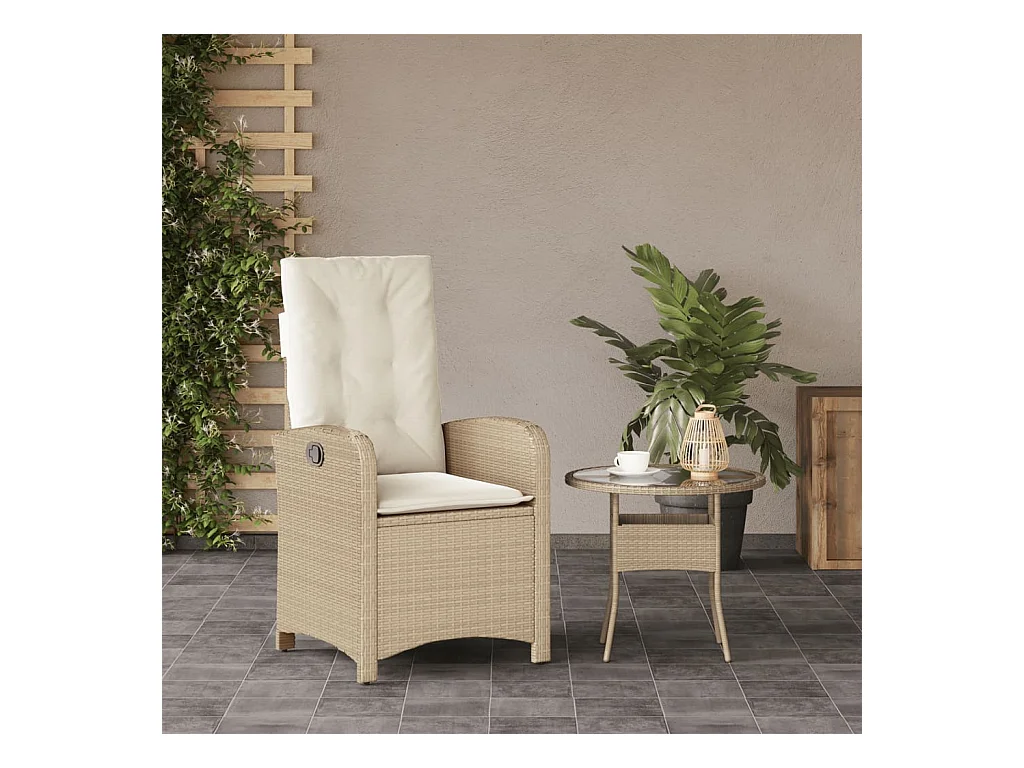 Chaises inclinables de jardin lot de 2 et coussins beige rotin