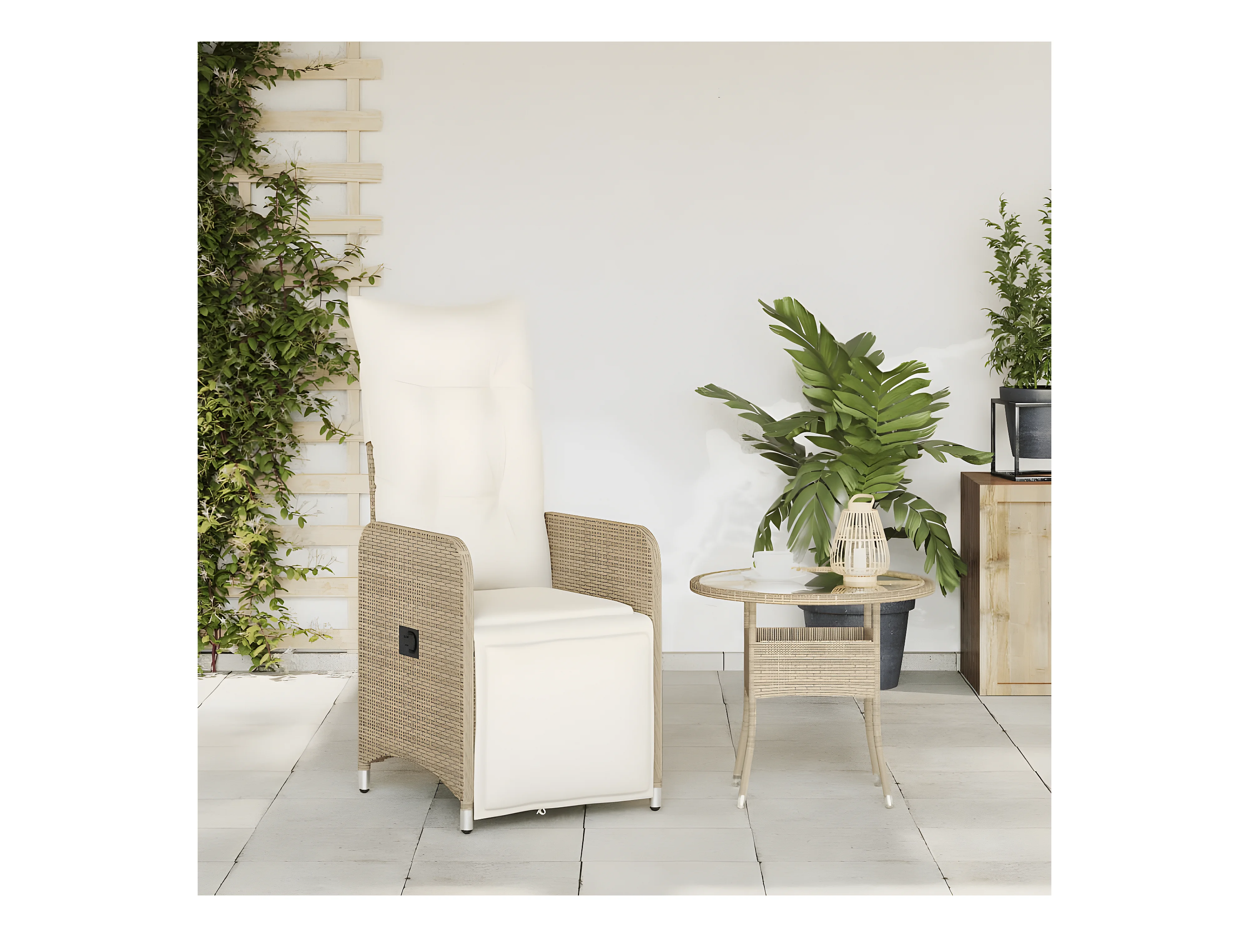 Chaise inclinable de jardin et repose-pied mélange beige rotin