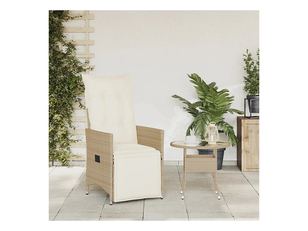 Chaise inclinable de jardin avec coussins beige résine tressée FR23587