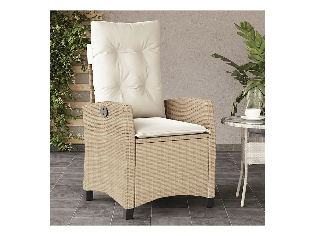 Chaise inclinable de jardin coussins mélange beige poly rotin REO52513