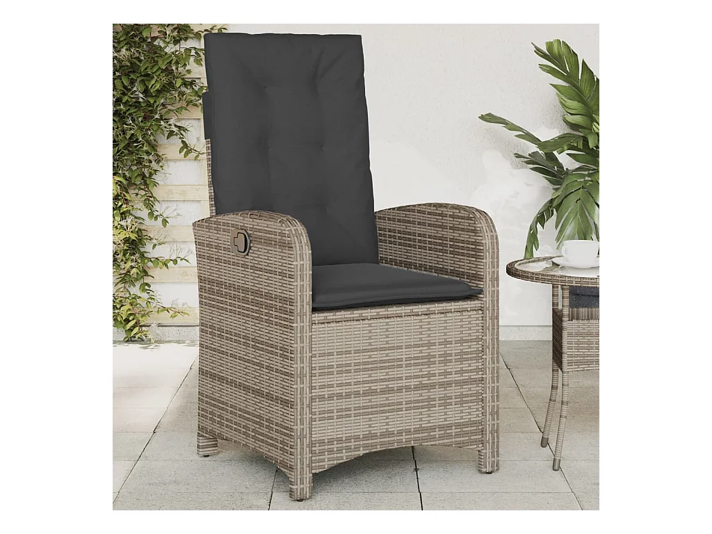 Chaise inclinable de jardin coussins gris clair résine tressée
