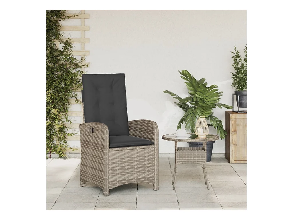 Chaise inclinable de jardin avec coussins gris résine tressée