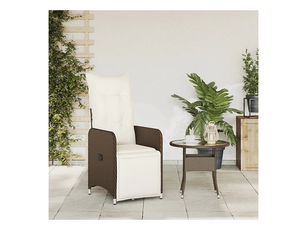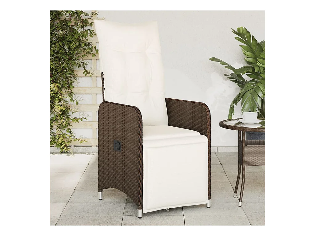 Chaise inclinable de jardin avec coussins marron résine tressée FR17510