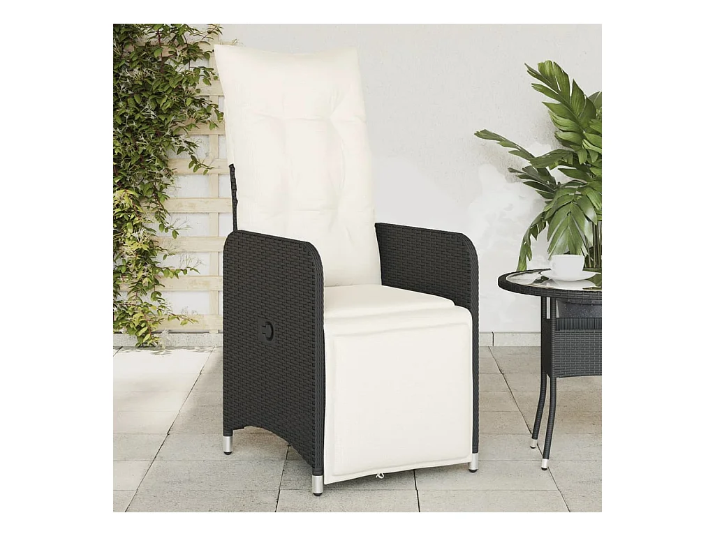 Chaise inclinable de jardin avec coussins noir résine tressée