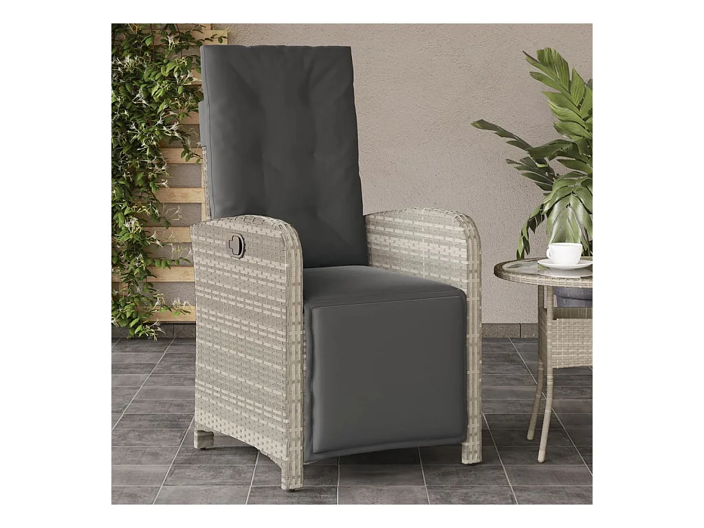 Chaise inclinable de jardin coussins gris clair résine tressée REO44643