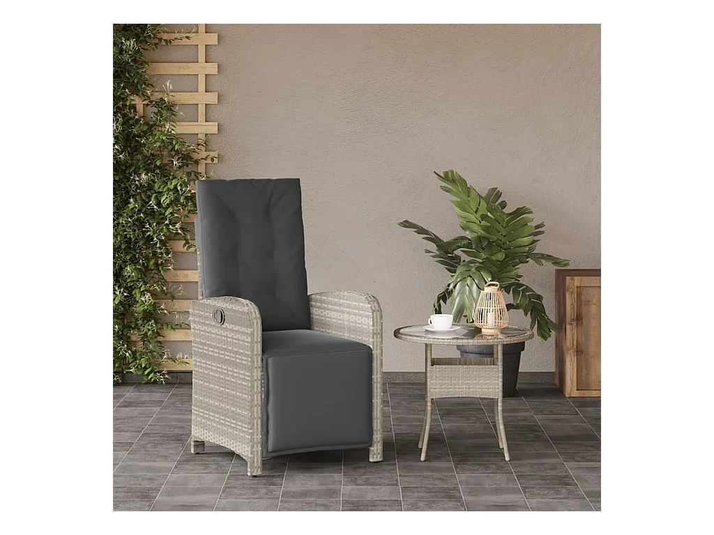 Chaise inclinable de jardin coussins gris clair résine tressée REO31315