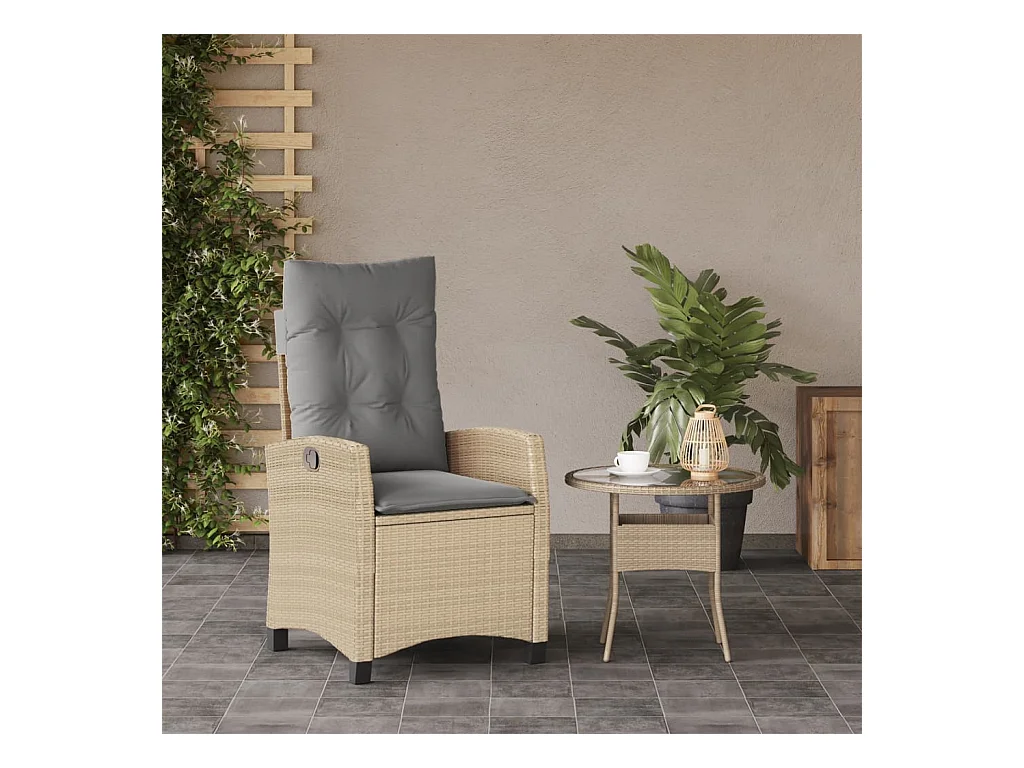 Chaise inclinable de jardin coussins mélange beige poly rotin REO52513