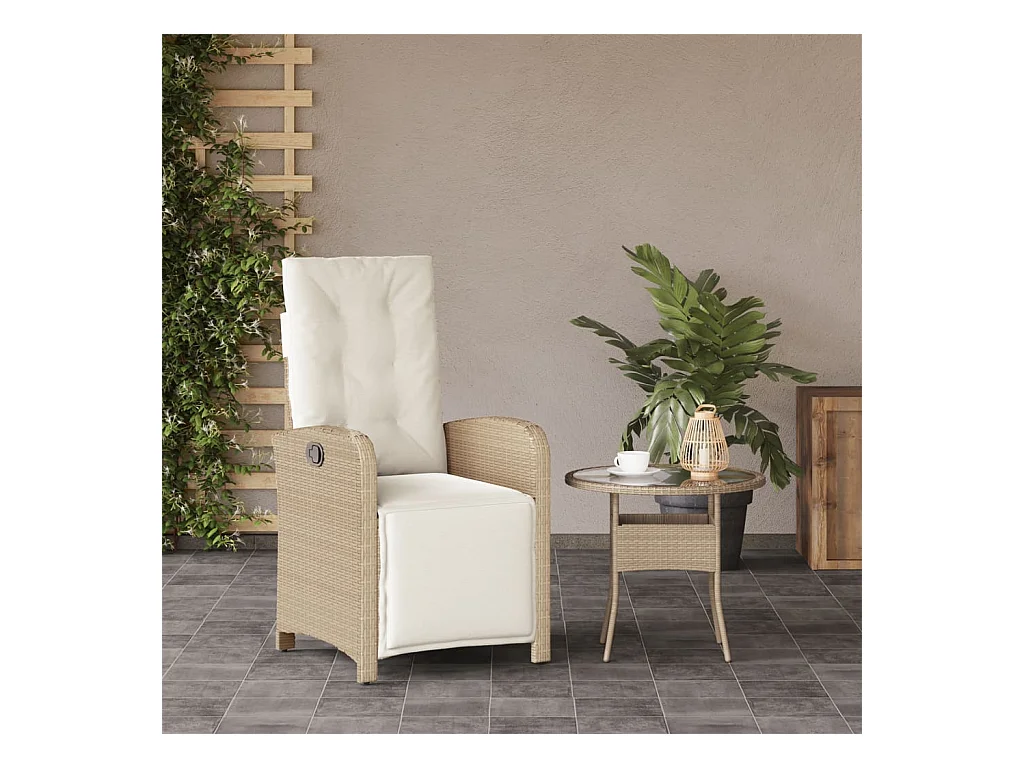 Chaise inclinable de jardin coussins mélange beige poly rotin REO27924