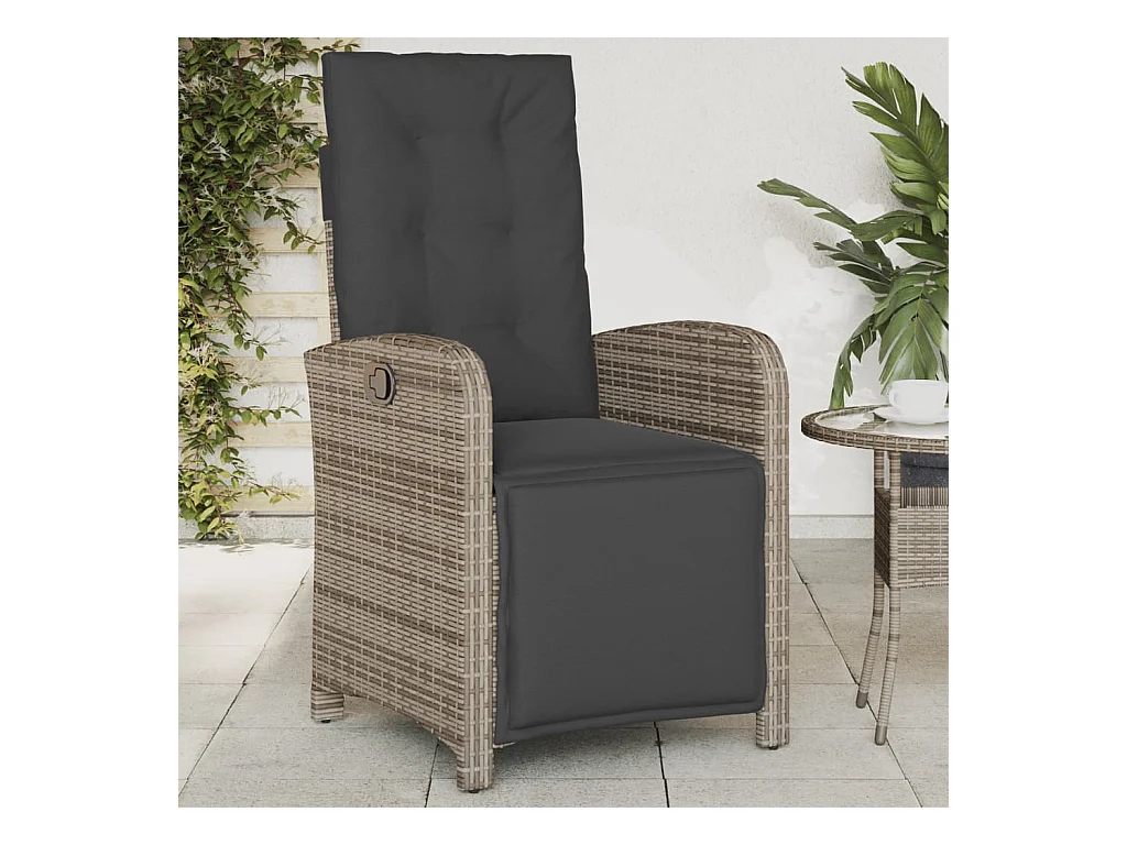Chaise inclinable de jardin avec coussins gris résine tressée