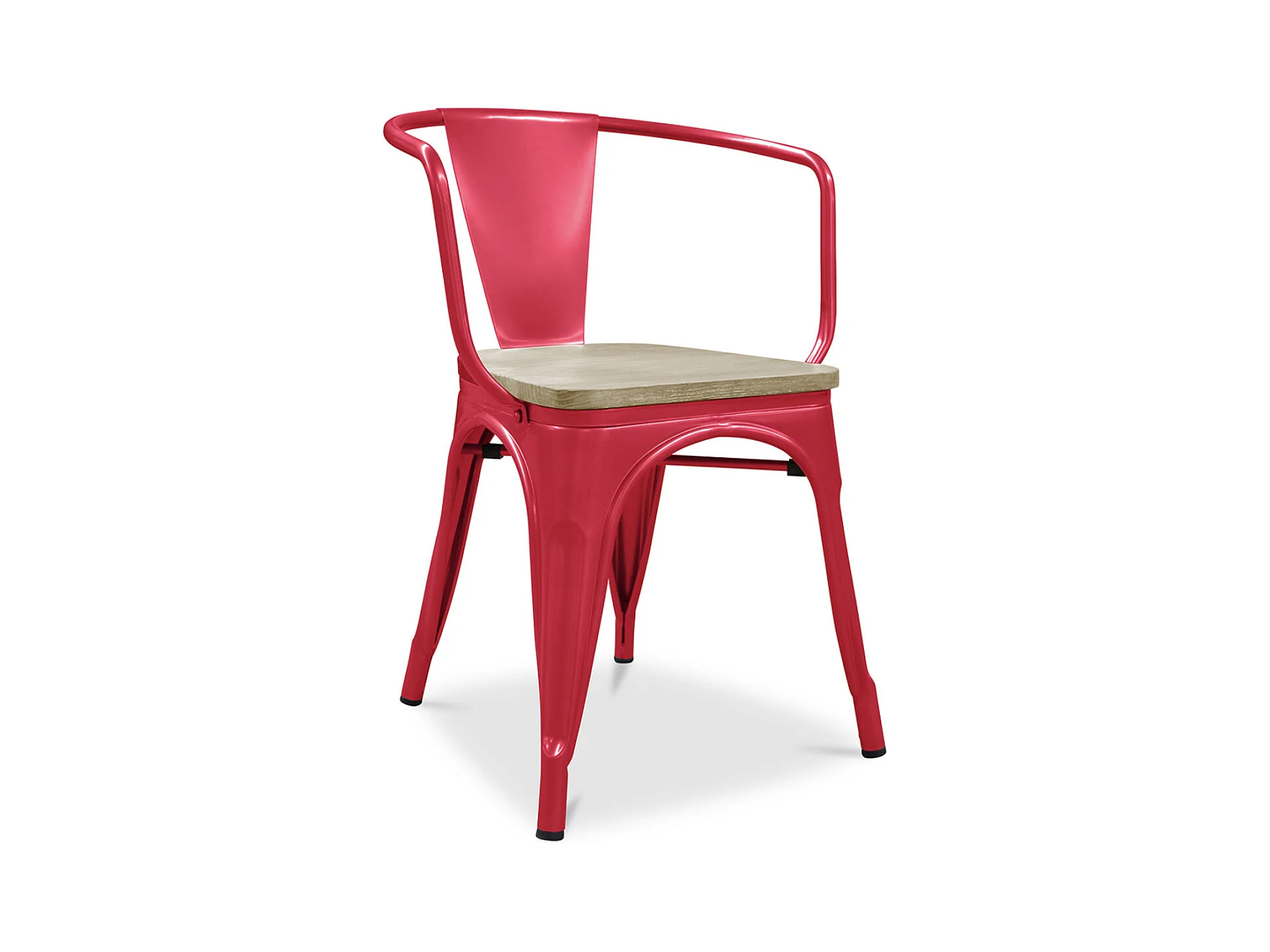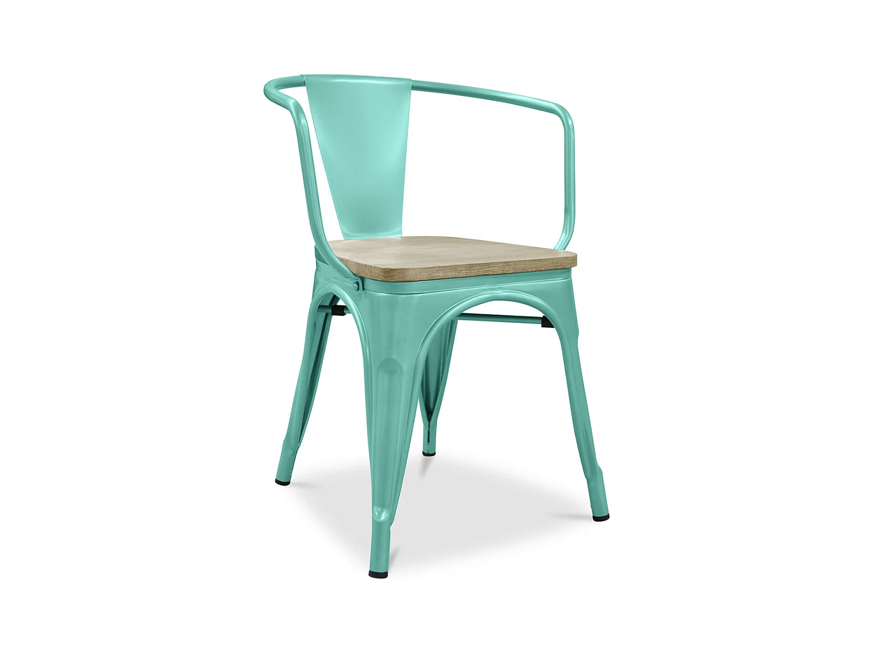 Chaise industrielle avec accoudoirs acier brillant et assise en bois massif naturel Reko-Couleur Bleu turquoise
