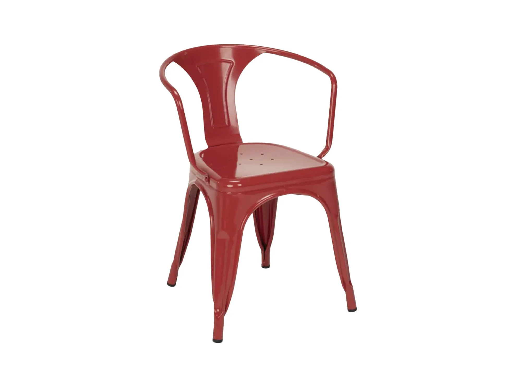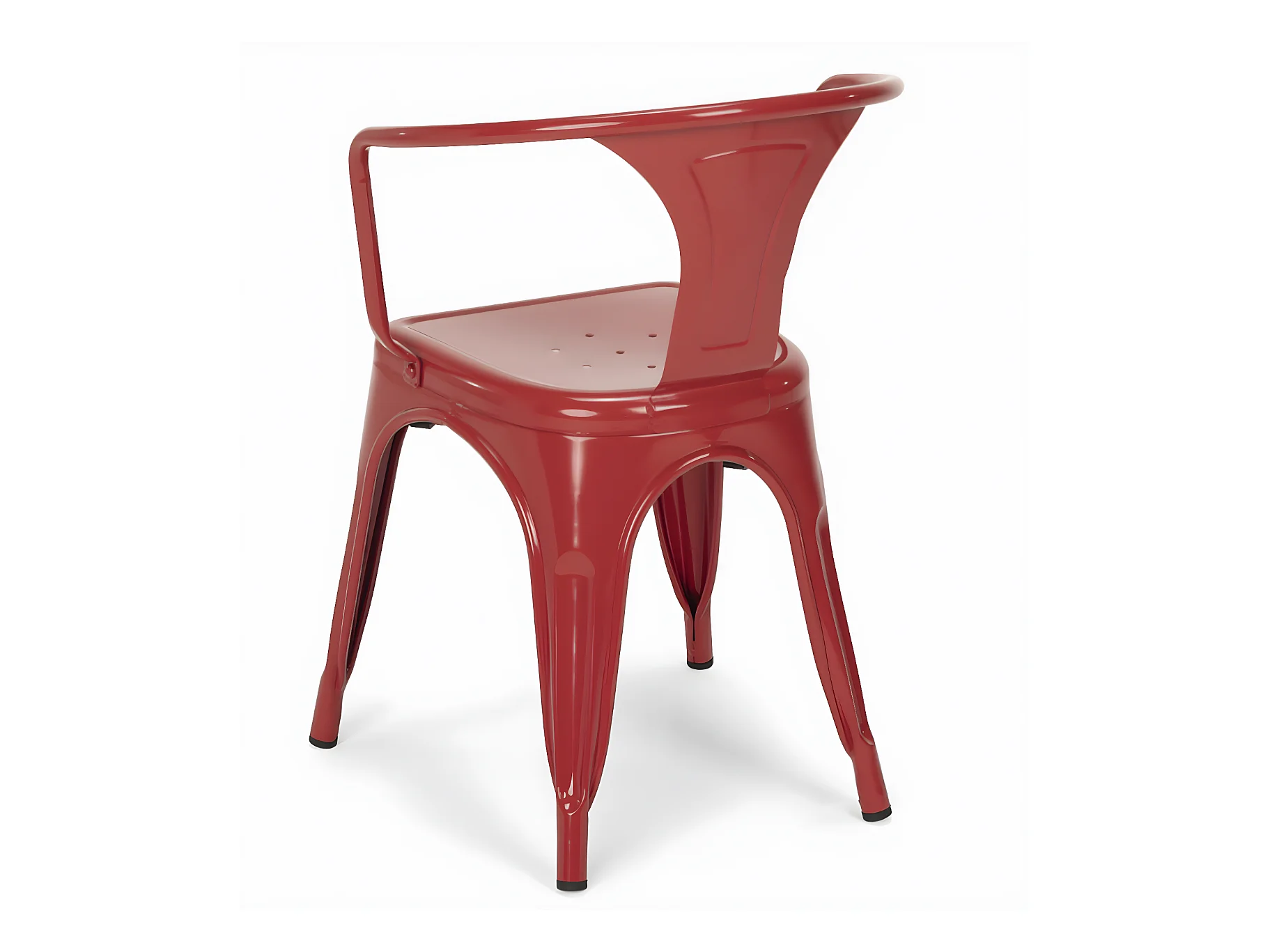 Chaise industrielle avec accoudoirs acier brillant Poka --Couleur Rouge