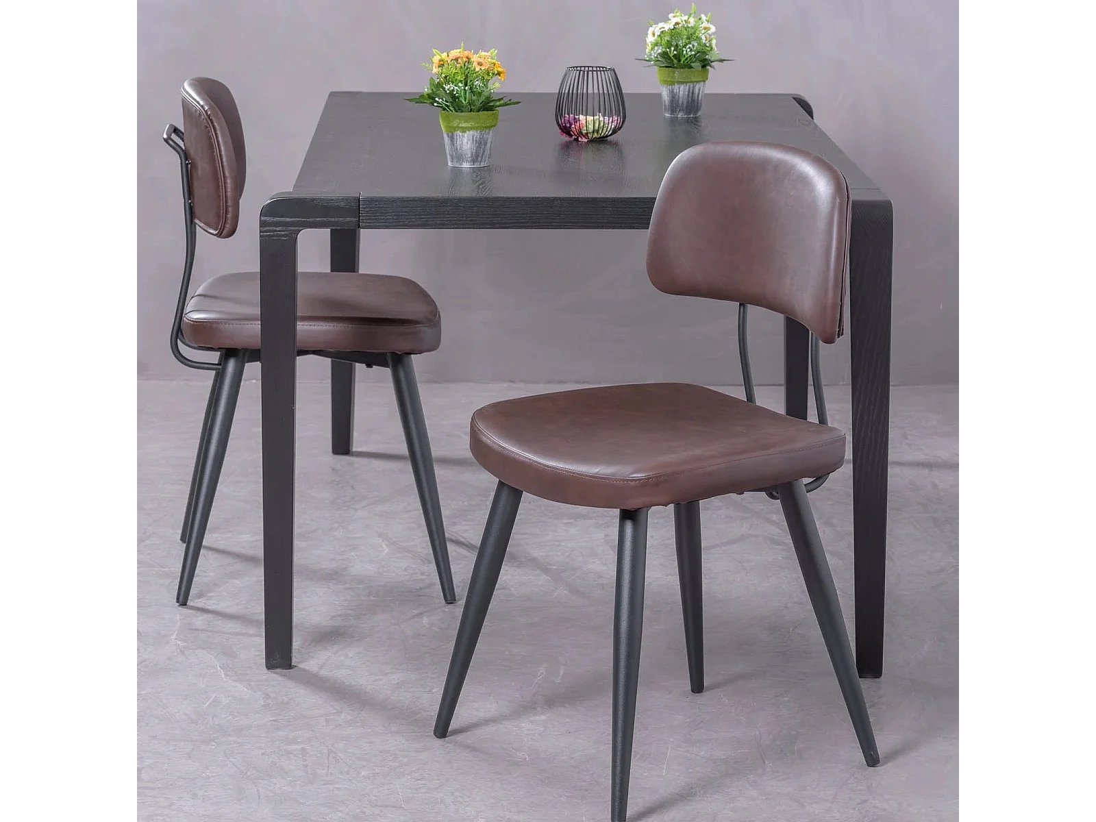 Chaise industrielle rétro tapissée en simili cuir - Copine - Brun