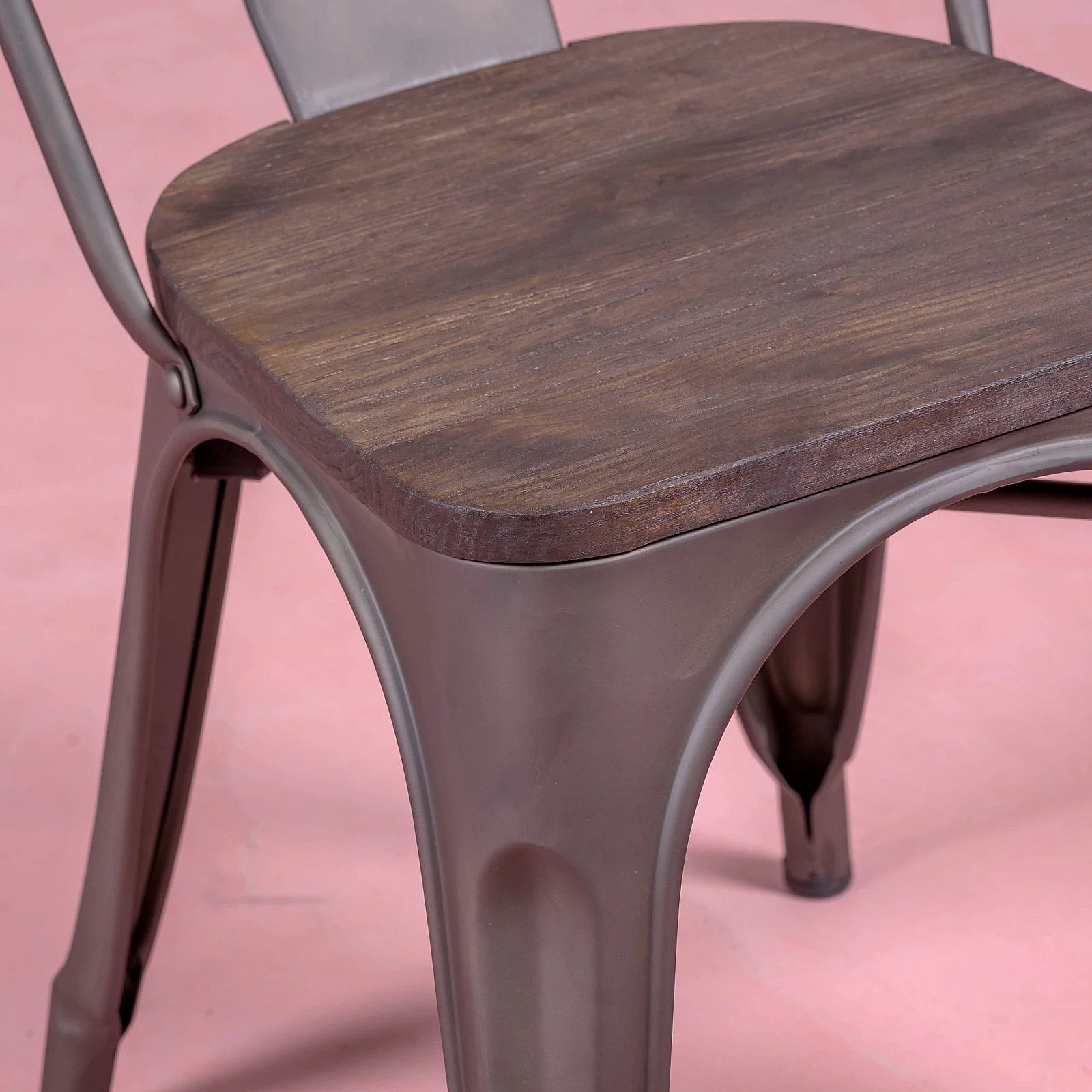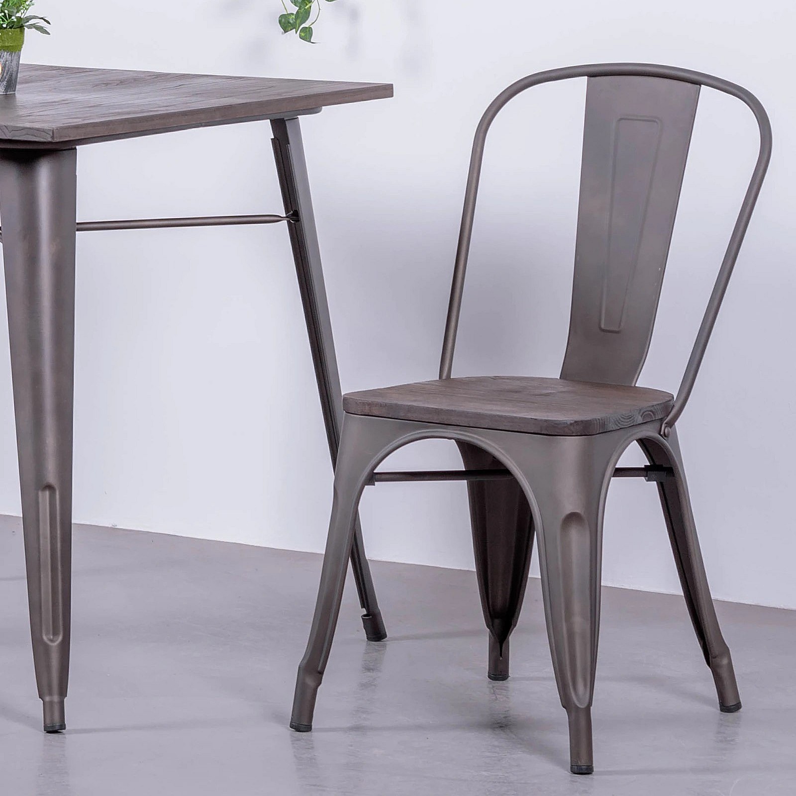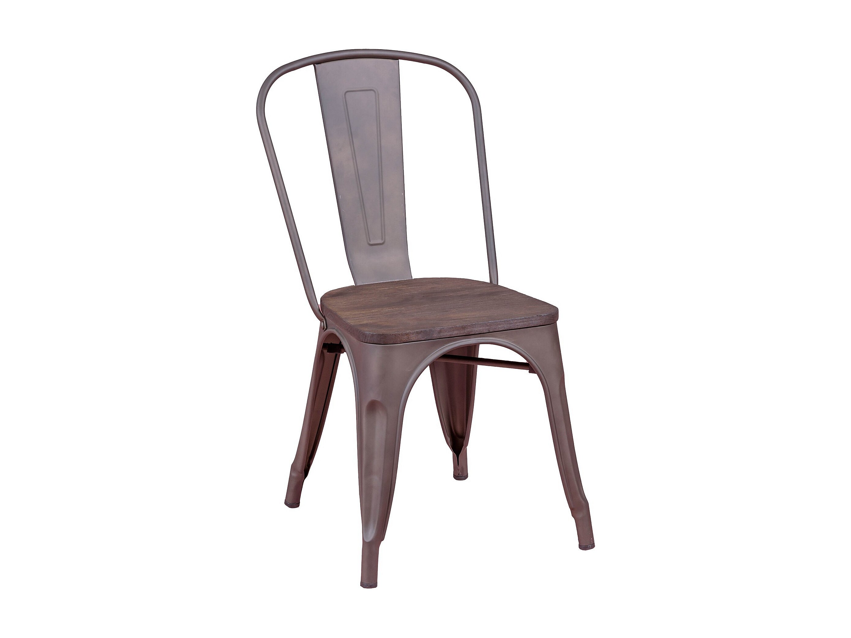 Chaise industrielle vieillie avec assise en bois foncé - Bistro - Antique