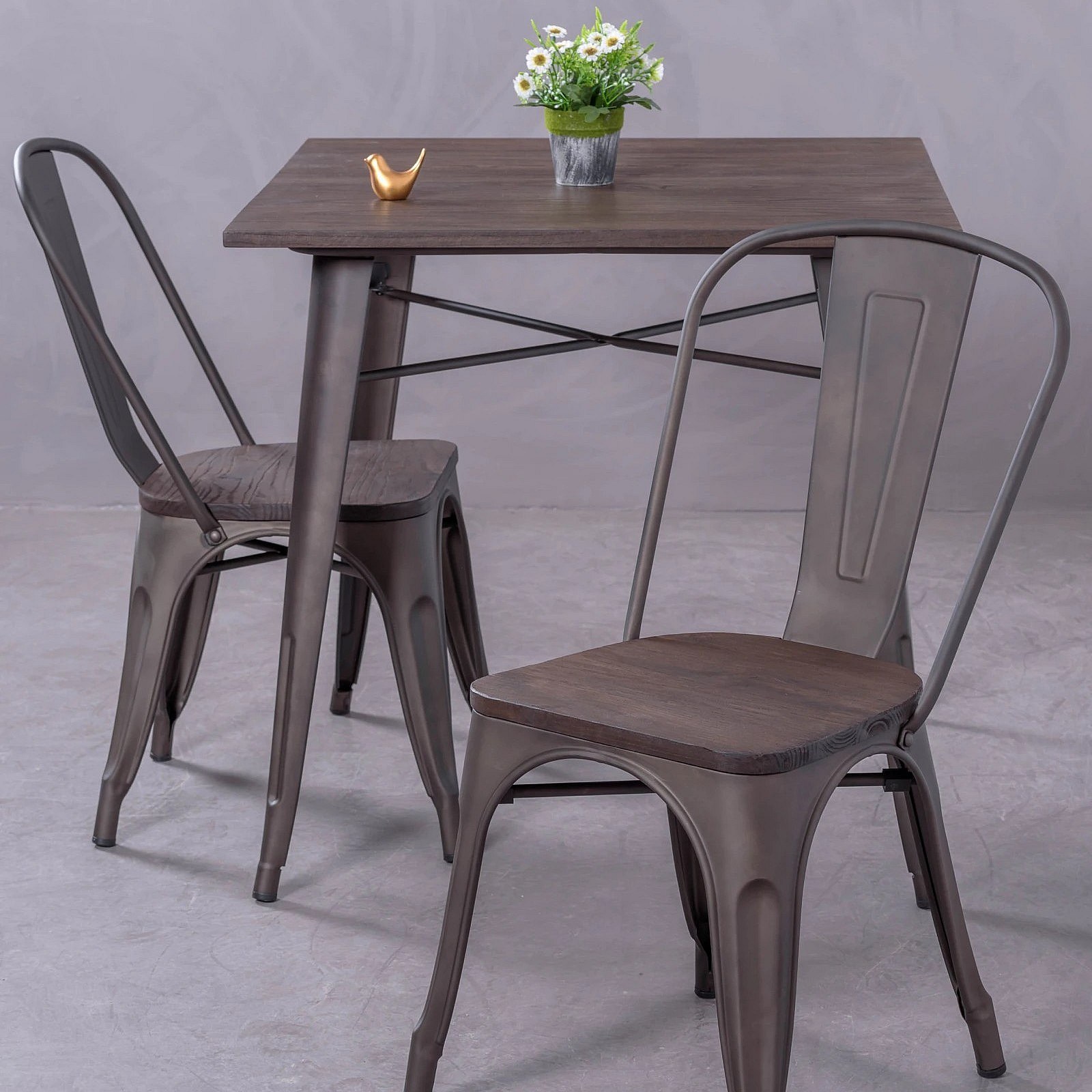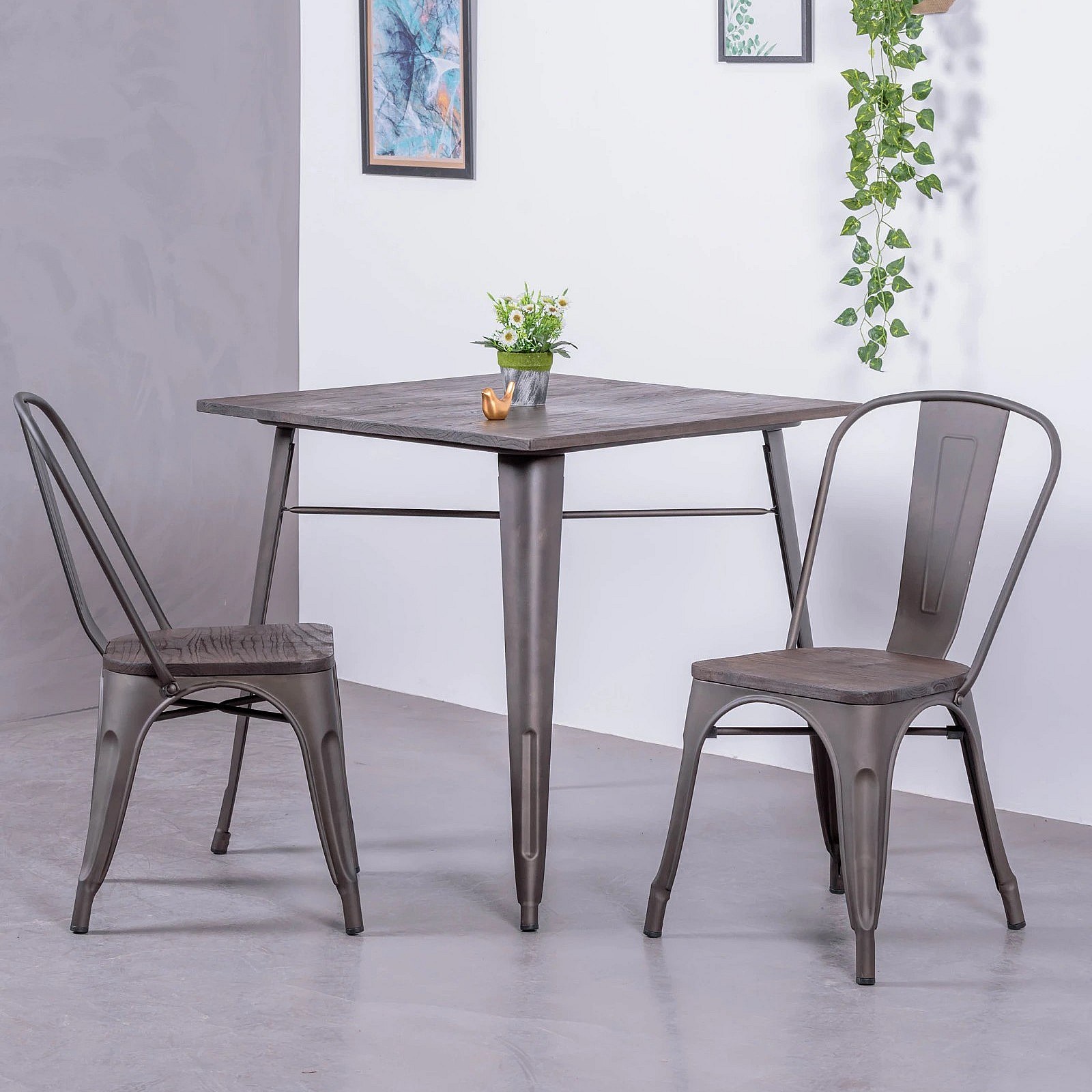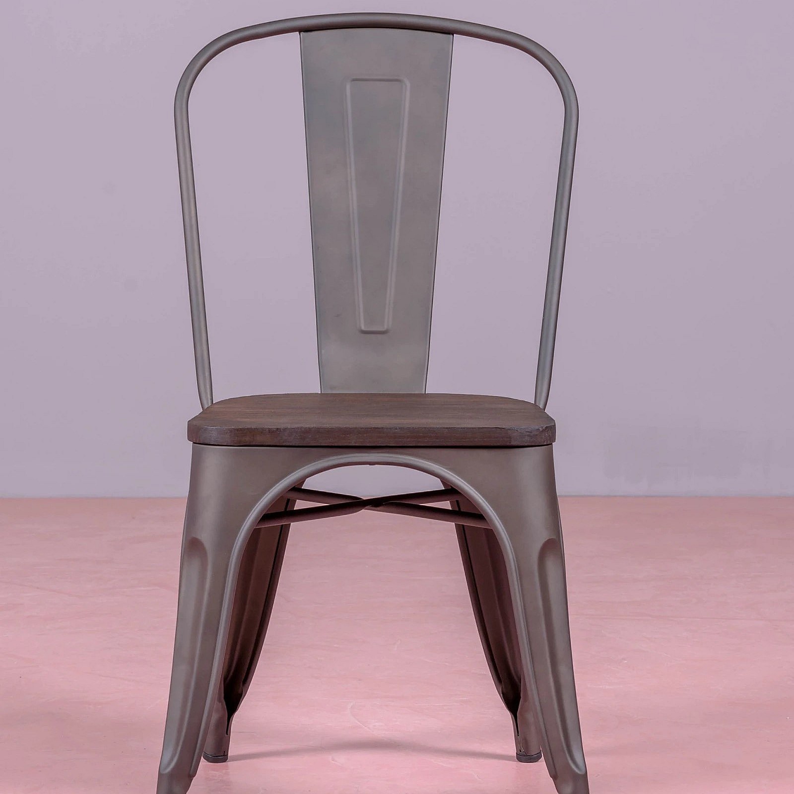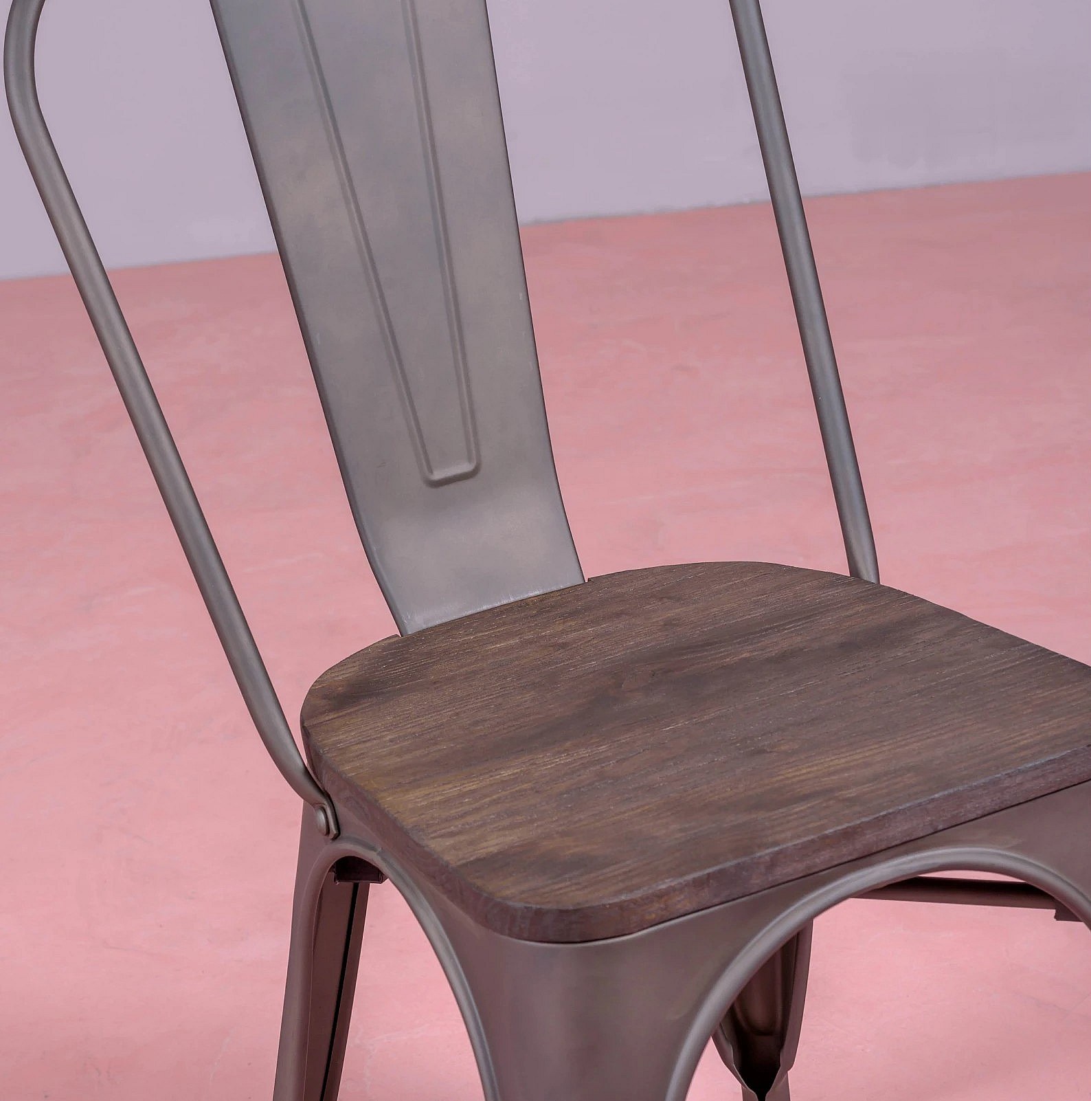 Chaise industrielle vieillie avec assise en bois foncé - Bistro - Antique