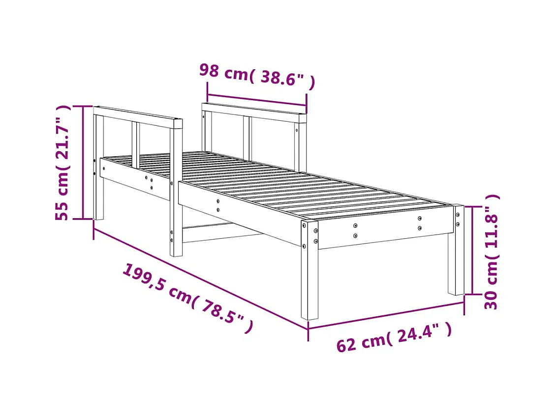 Chaise longue 199,5x62x55 cm bois massif de pin
