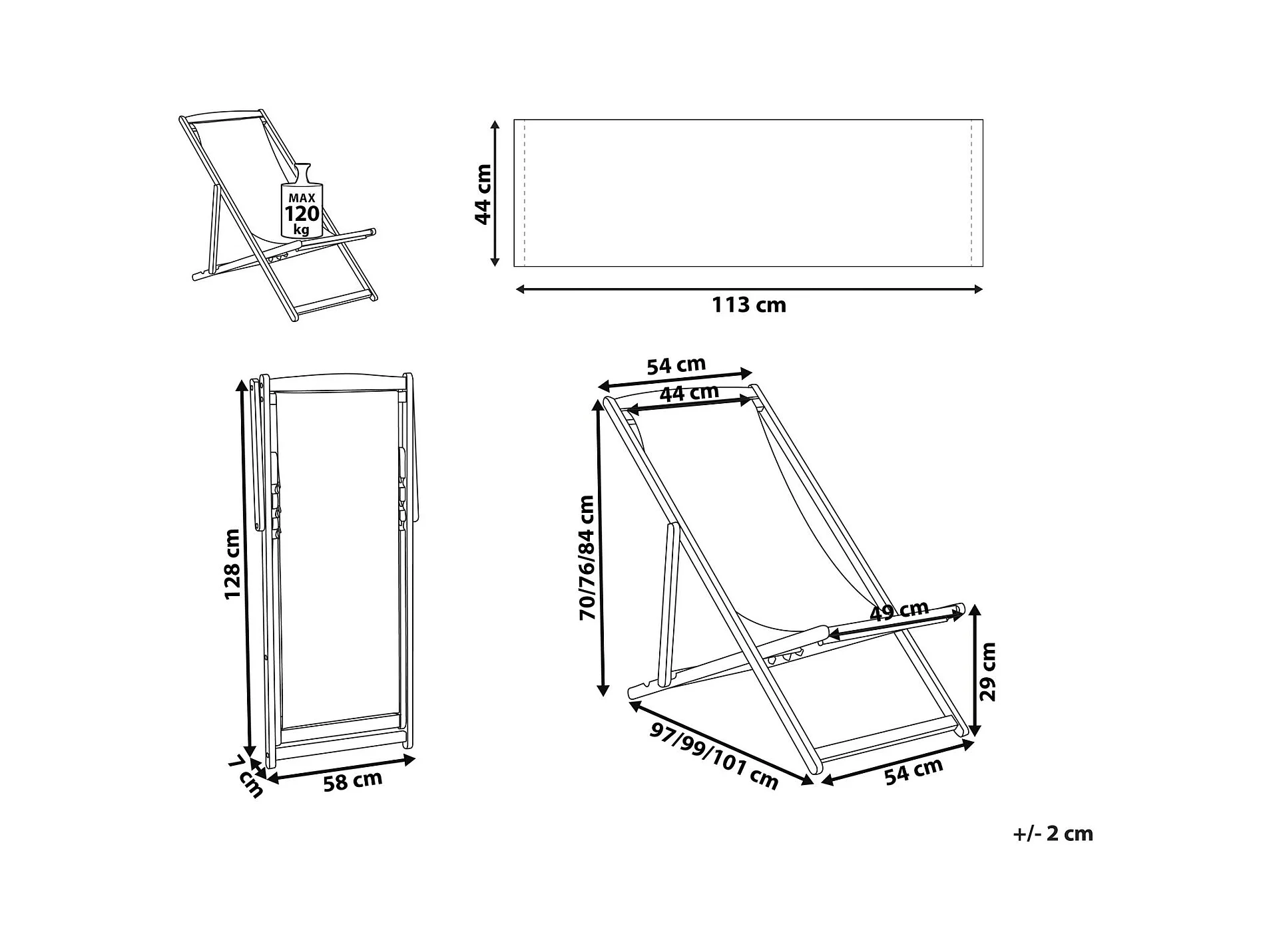 Lot de 2 chiliennes pliantes ANZIO avec tissus de remplacement Motif animal Acacia Marron foncé