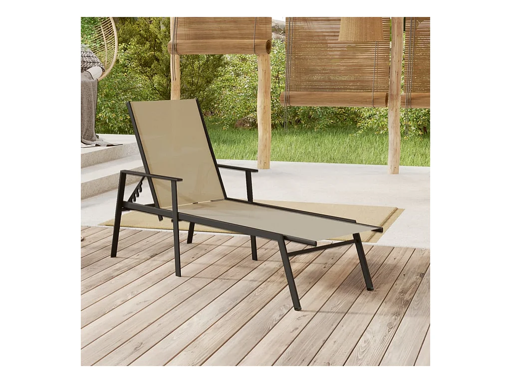 Chaise longue avec auvent crème 167x80x195 cm tissu et acier