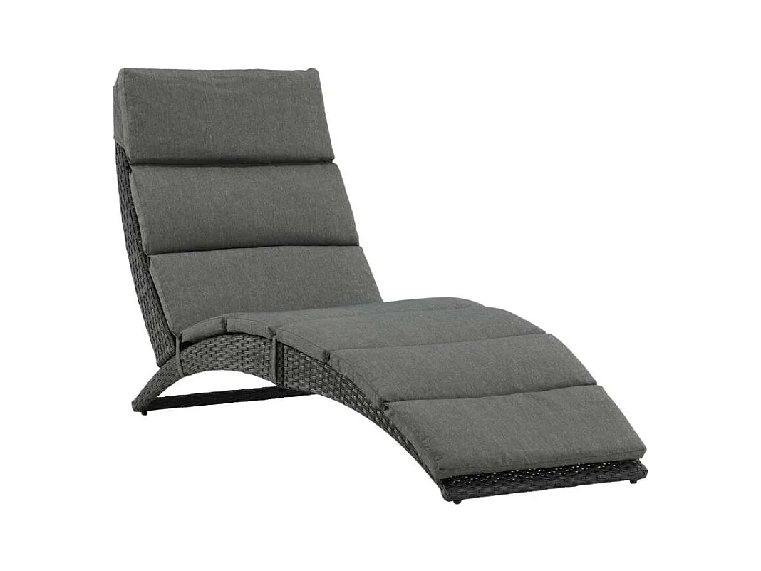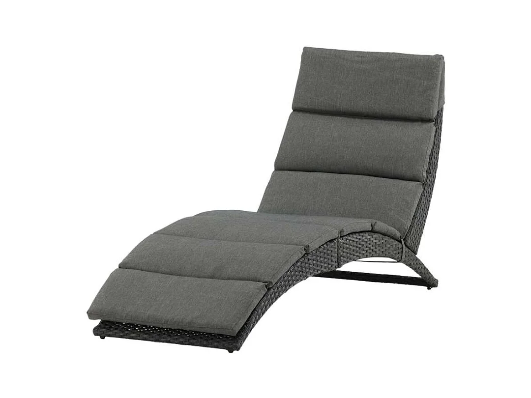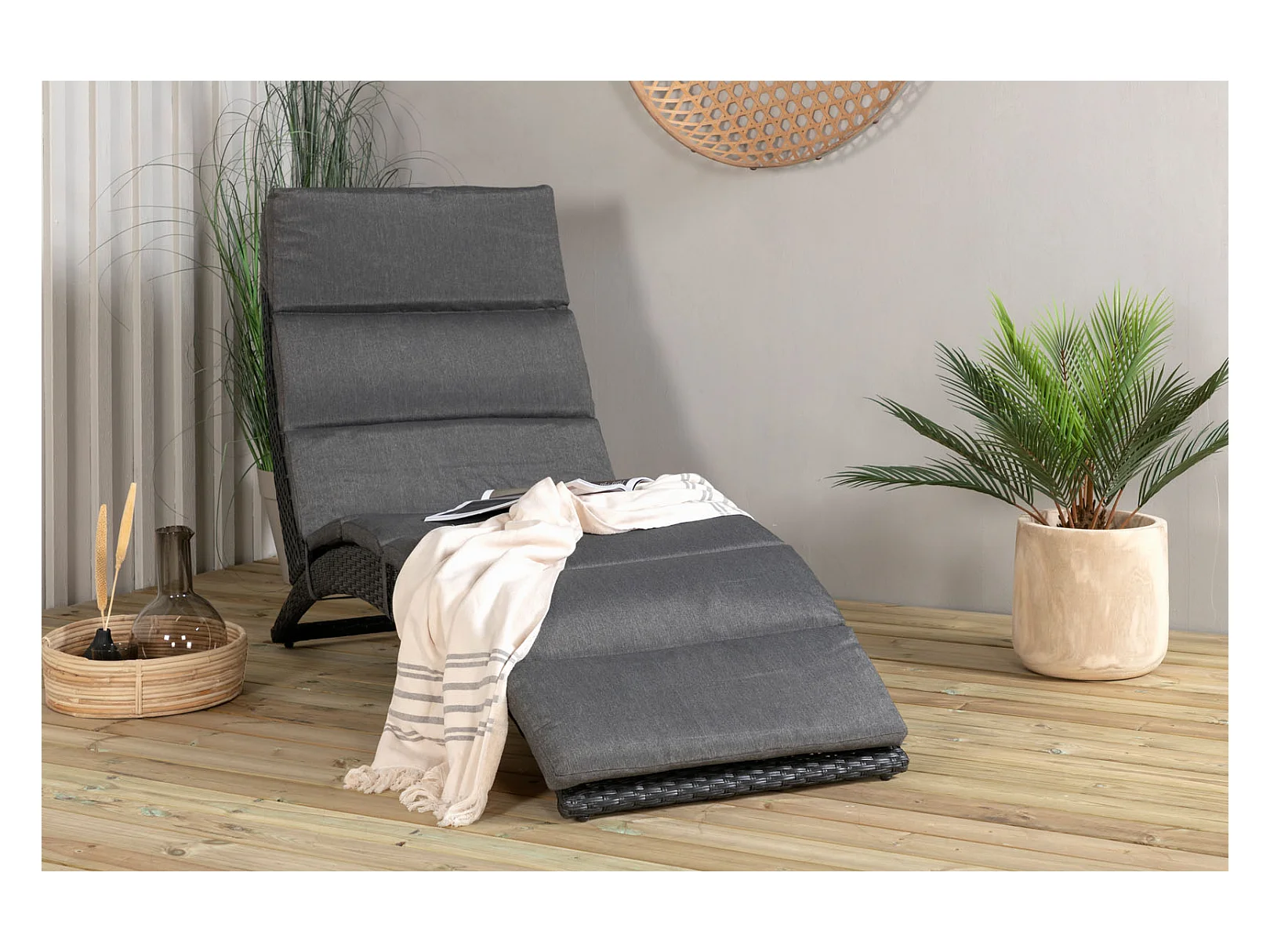 Chaise longue avec coussin blanc crème Résine tressée Noir