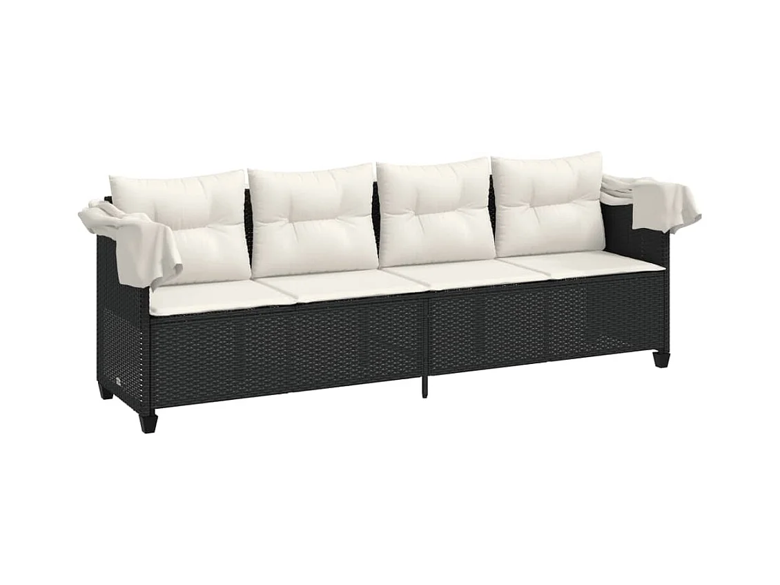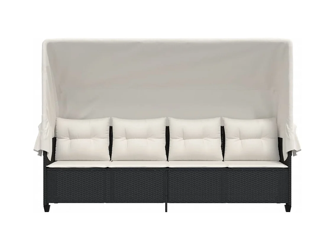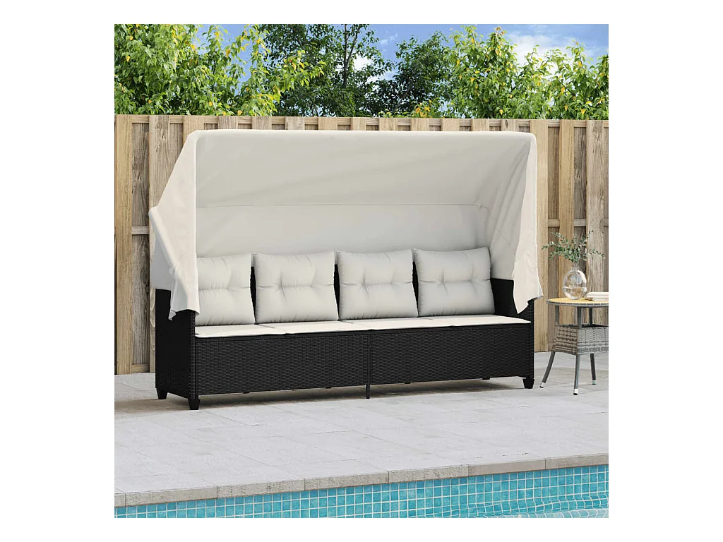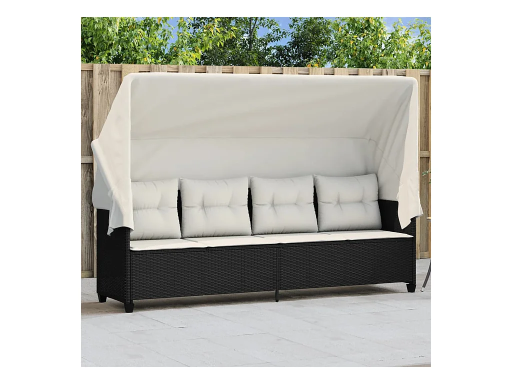 Chaise longue avec coussin noir 60x205x73 cm résine tressée