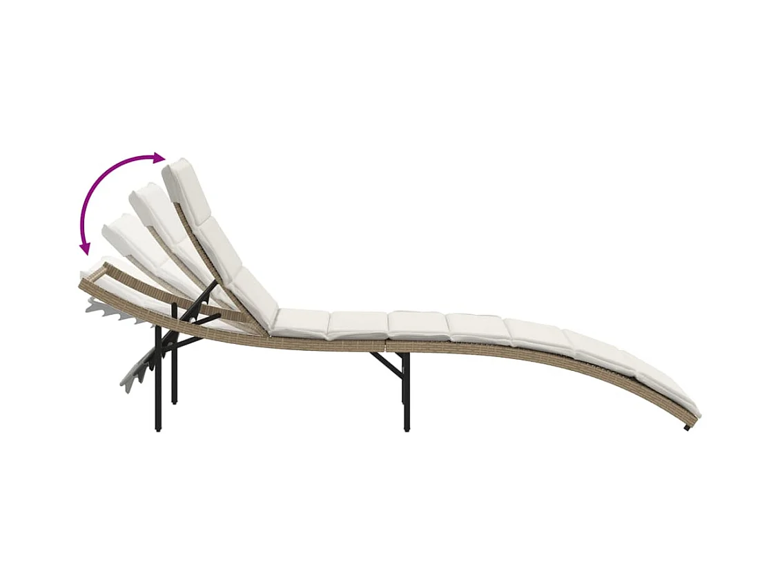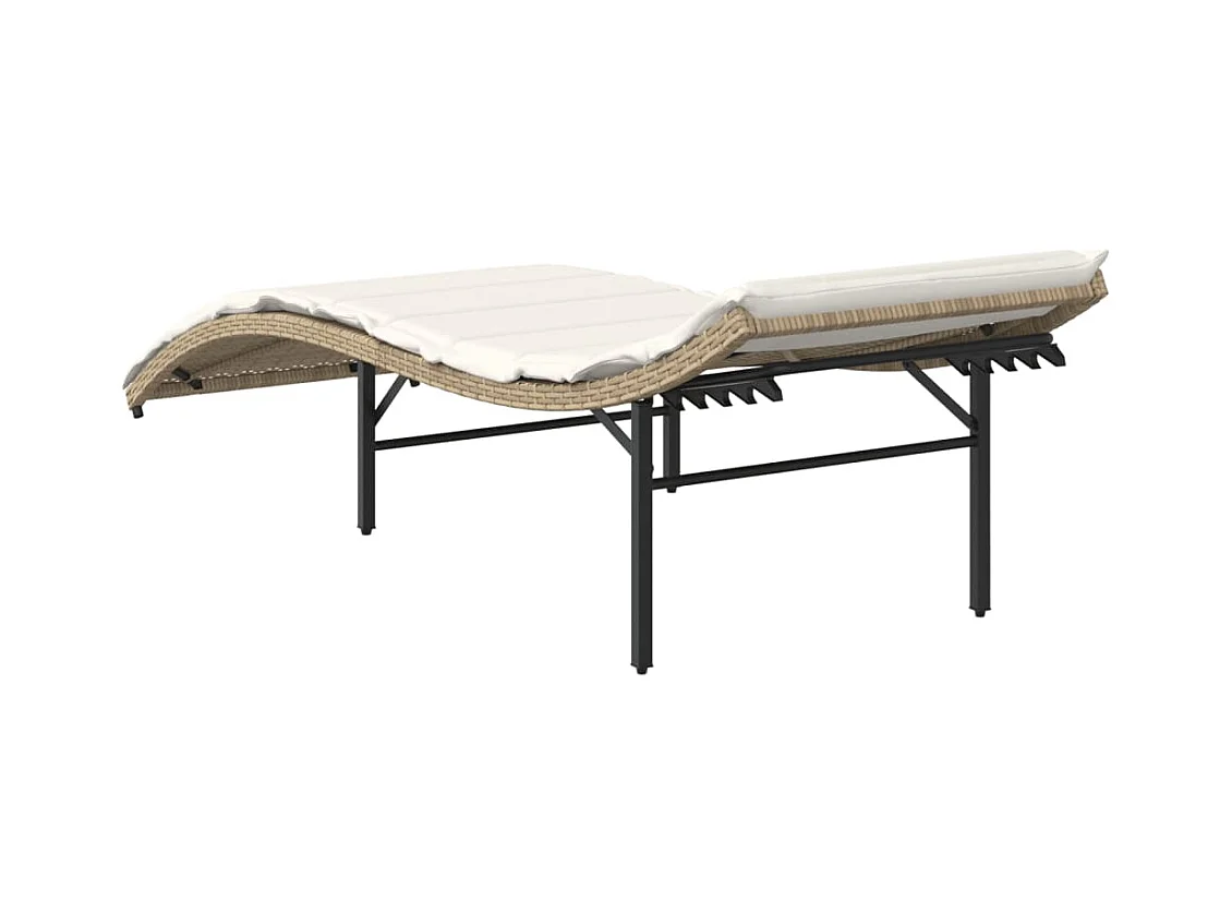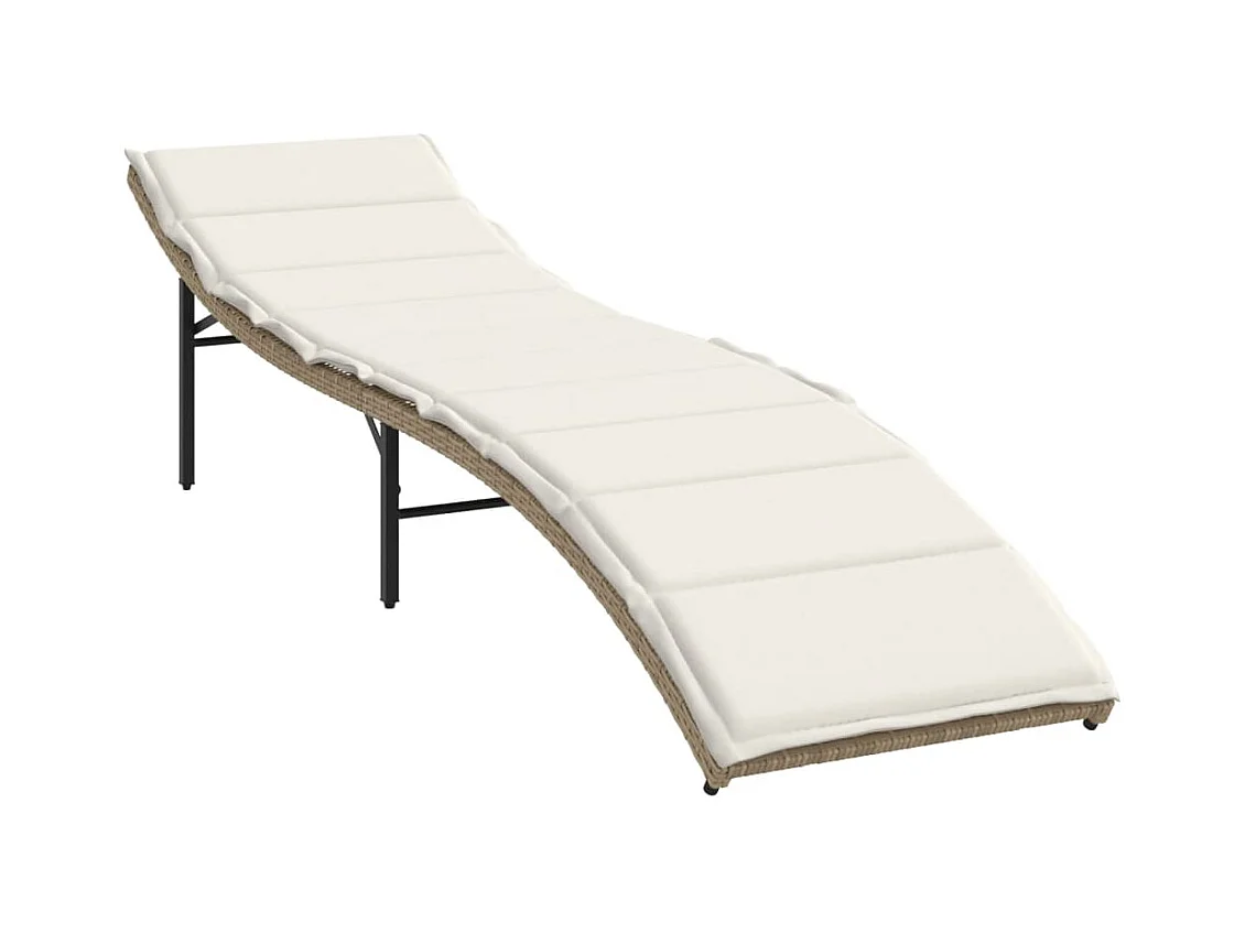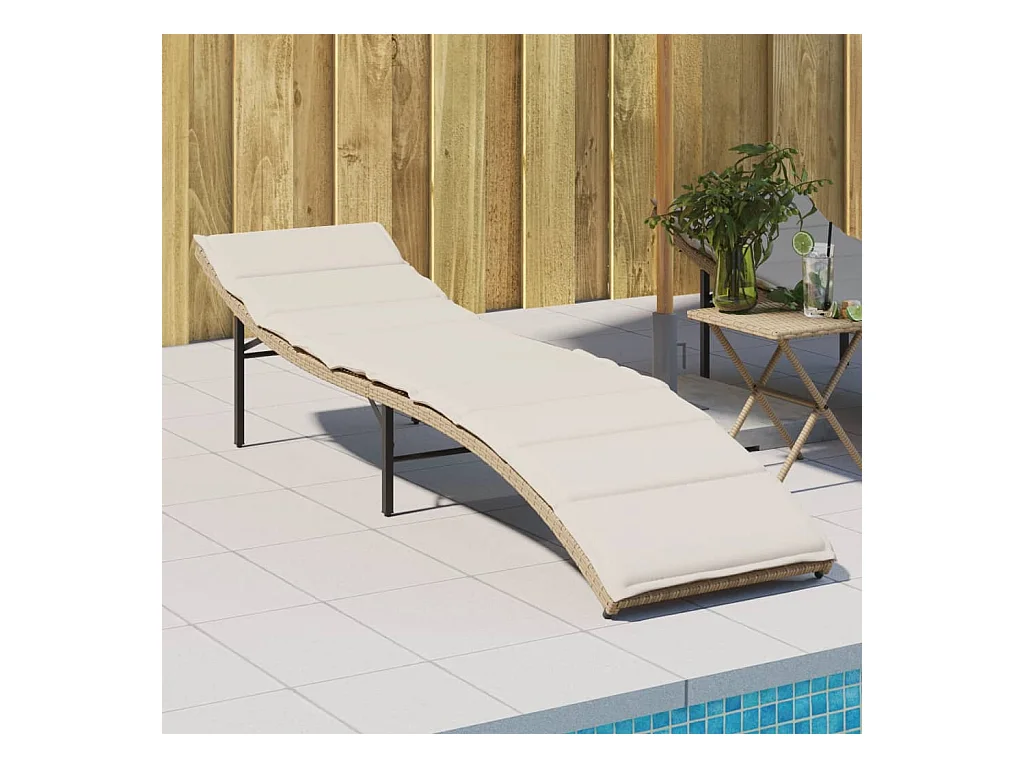 Chaise longue avec coussin beige 60x205x73 cm résine tressée