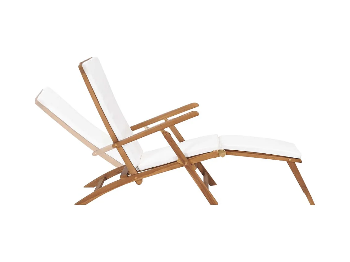 Chaise longue avec coussin Blanc crème Bois de teck solide