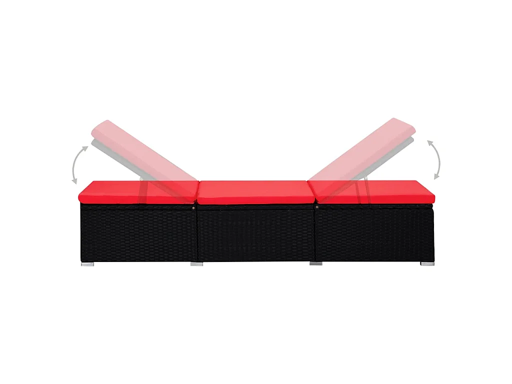 Chaise longue avec coussin et table à thé Résine tressée Rouge
