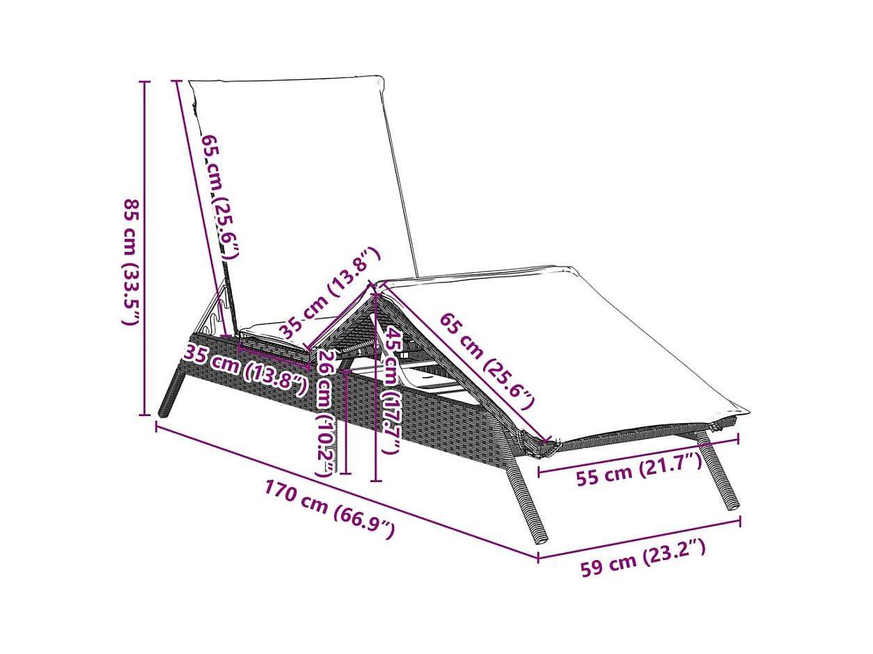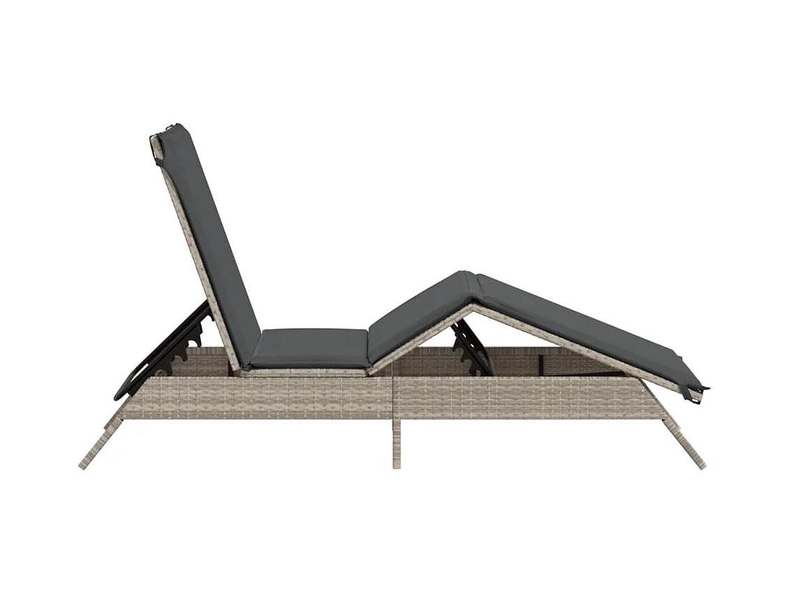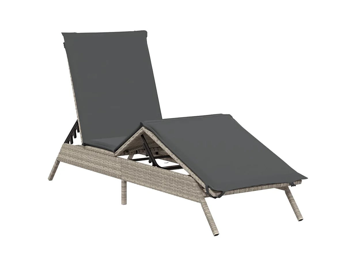 Bain de soleil avec coussin gris 63x200x81 cm résine tressée FR34898