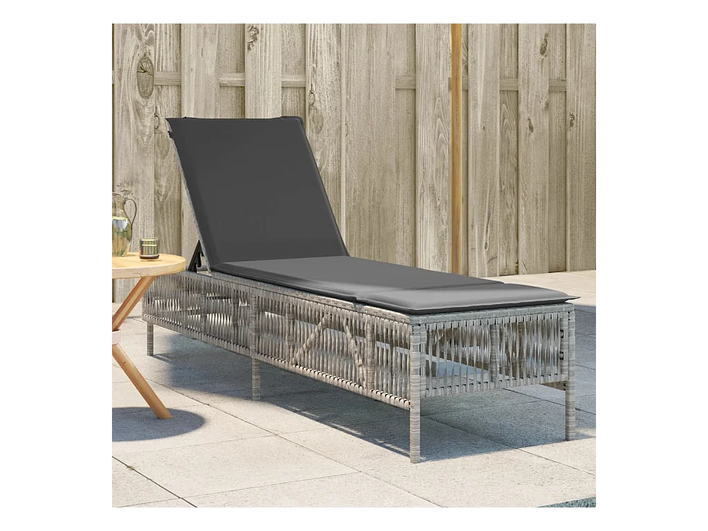 Chaise longue à 2 places avec coussins Résine tressée Gris