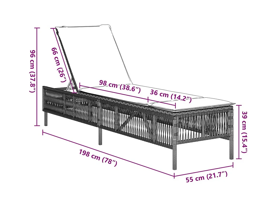 Chaise longue de jardin avec coussin Bois d'acacia solide