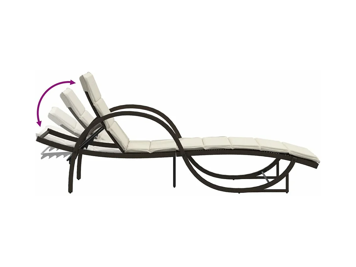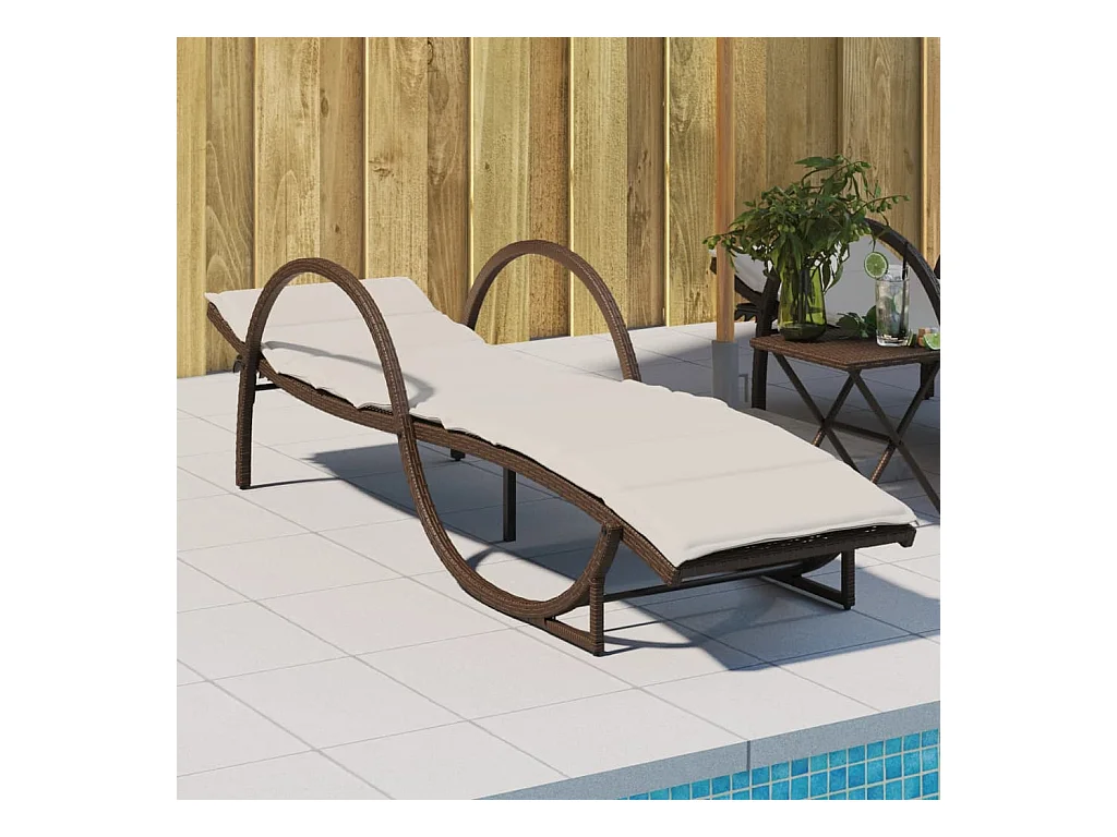 Chaise longue avec coussin marron 55x199x50 cm résine tressée