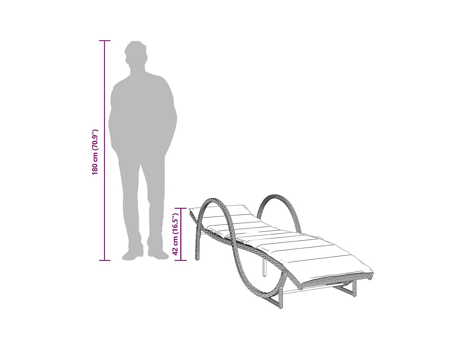 Chaise longue avec coussin marron 60x199x42 cm résine tressée