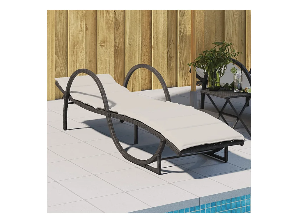 Chaise longue avec coussin noir 60x199x42 cm résine tressée