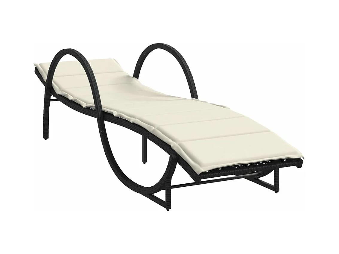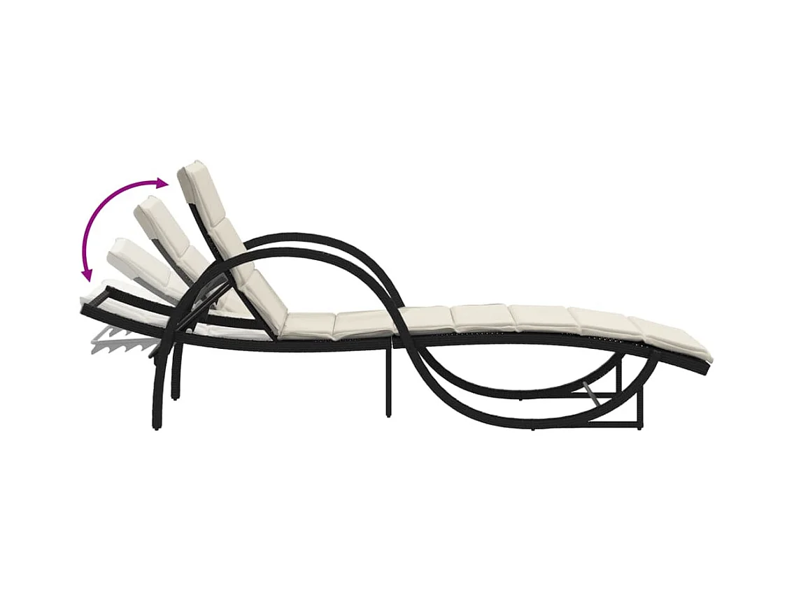 Chaise longue avec coussin noir 55x199x50 cm résine tressée