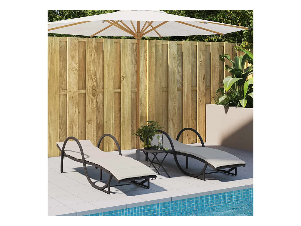 Chaise longue avec coussin noir 60x205x73 cm résine tressée