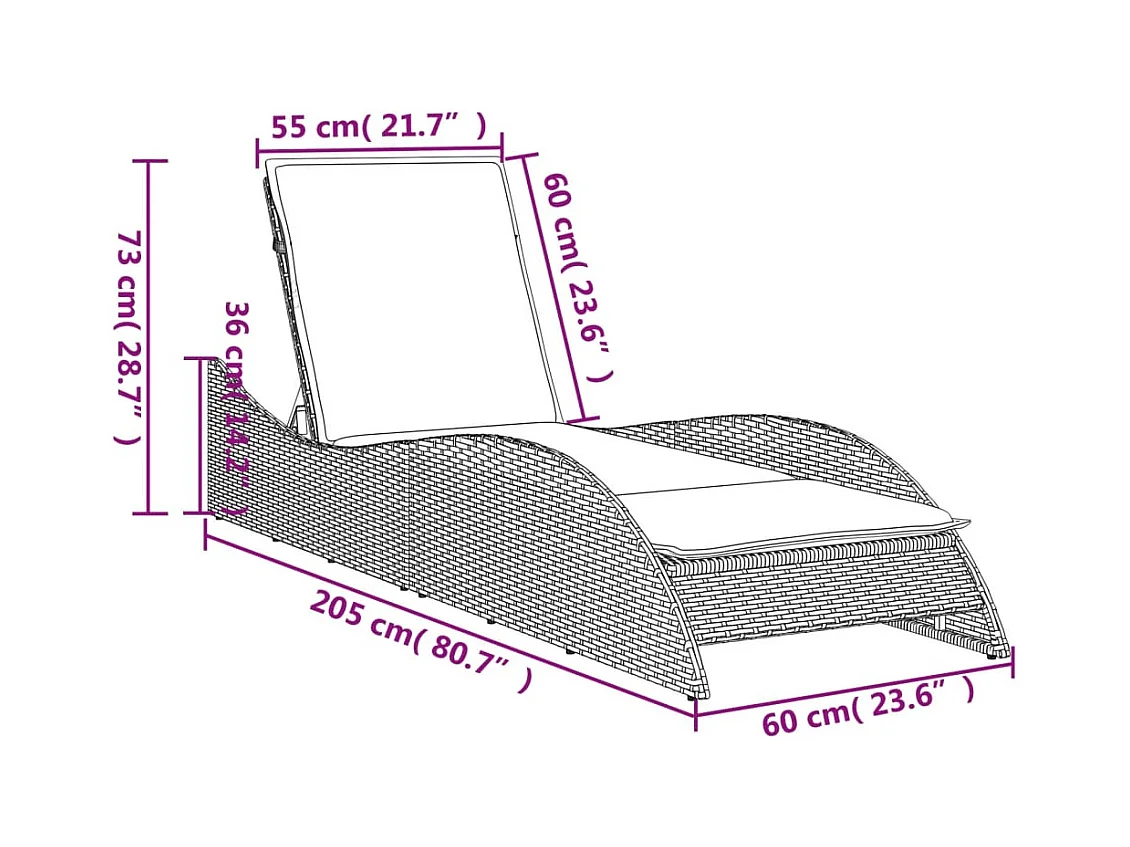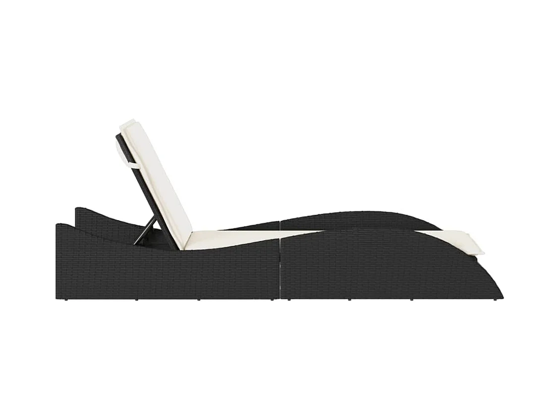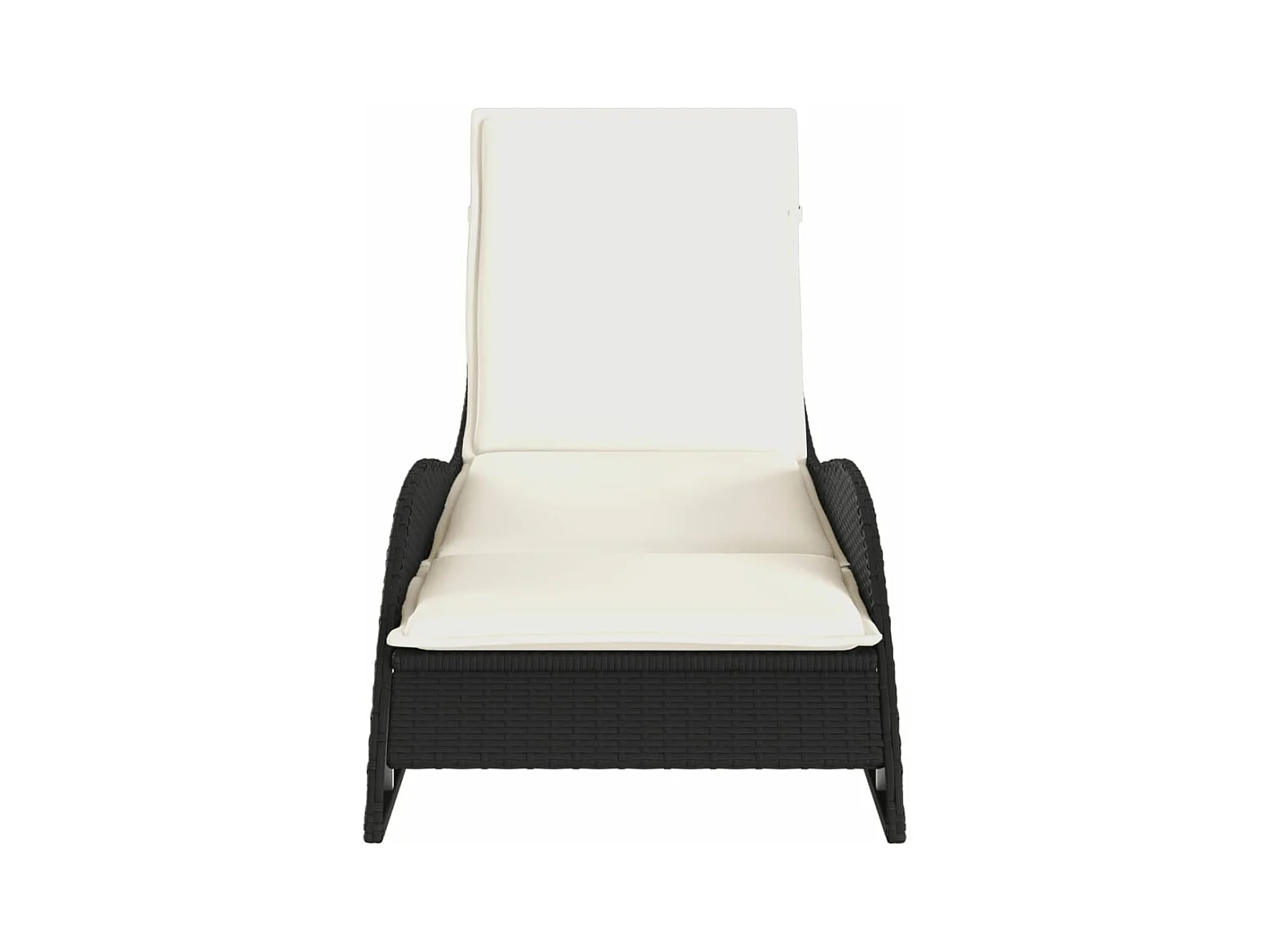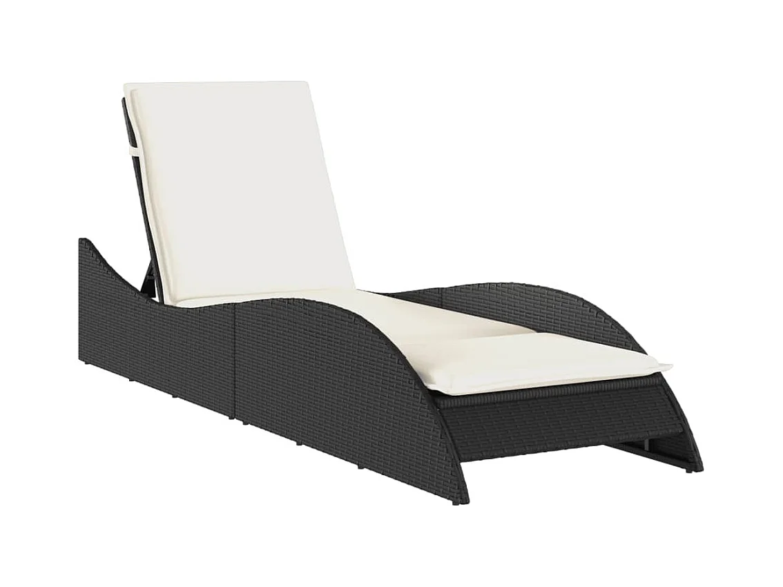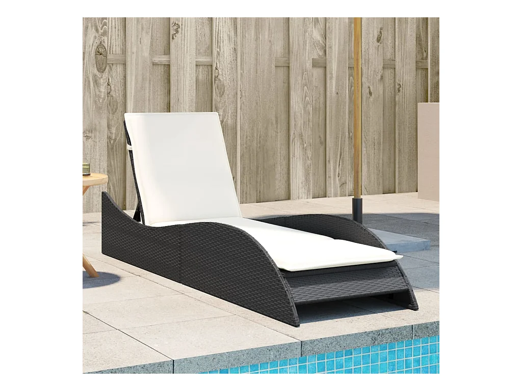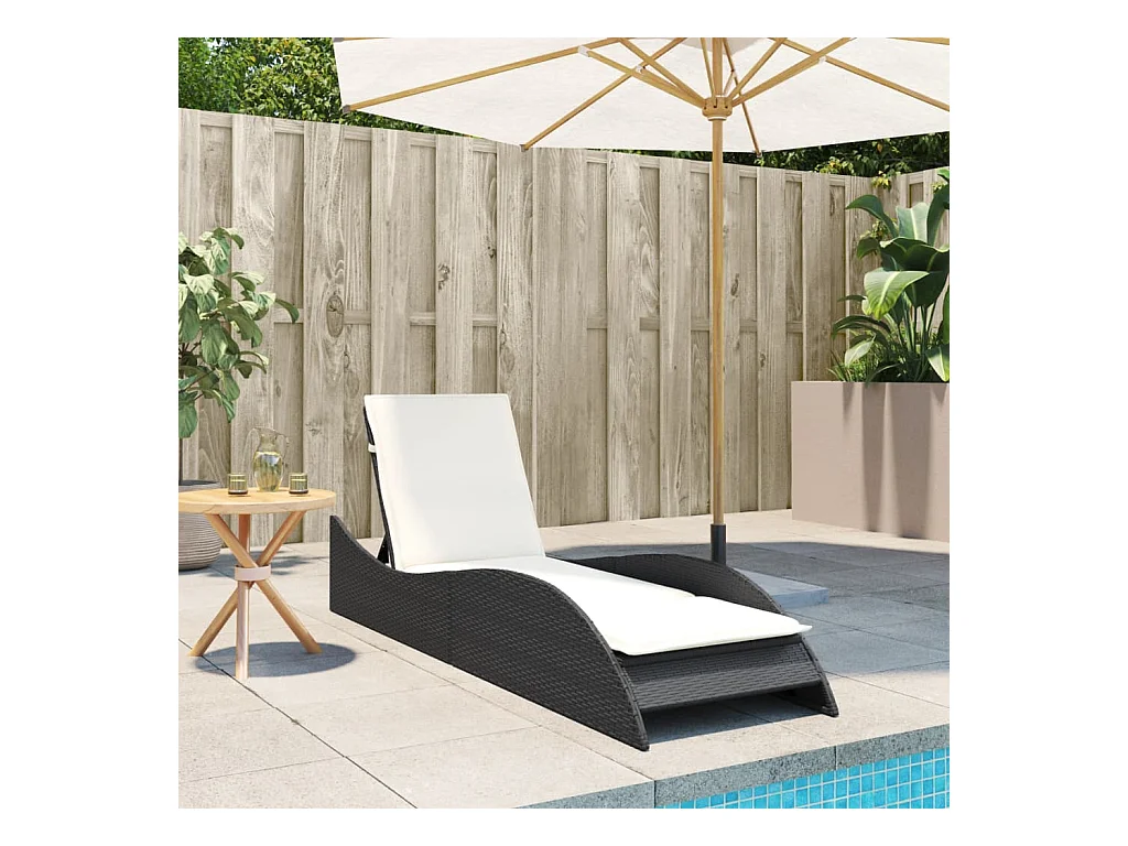 Chaise longue avec coussin noir 60x205x73 cm résine tressée