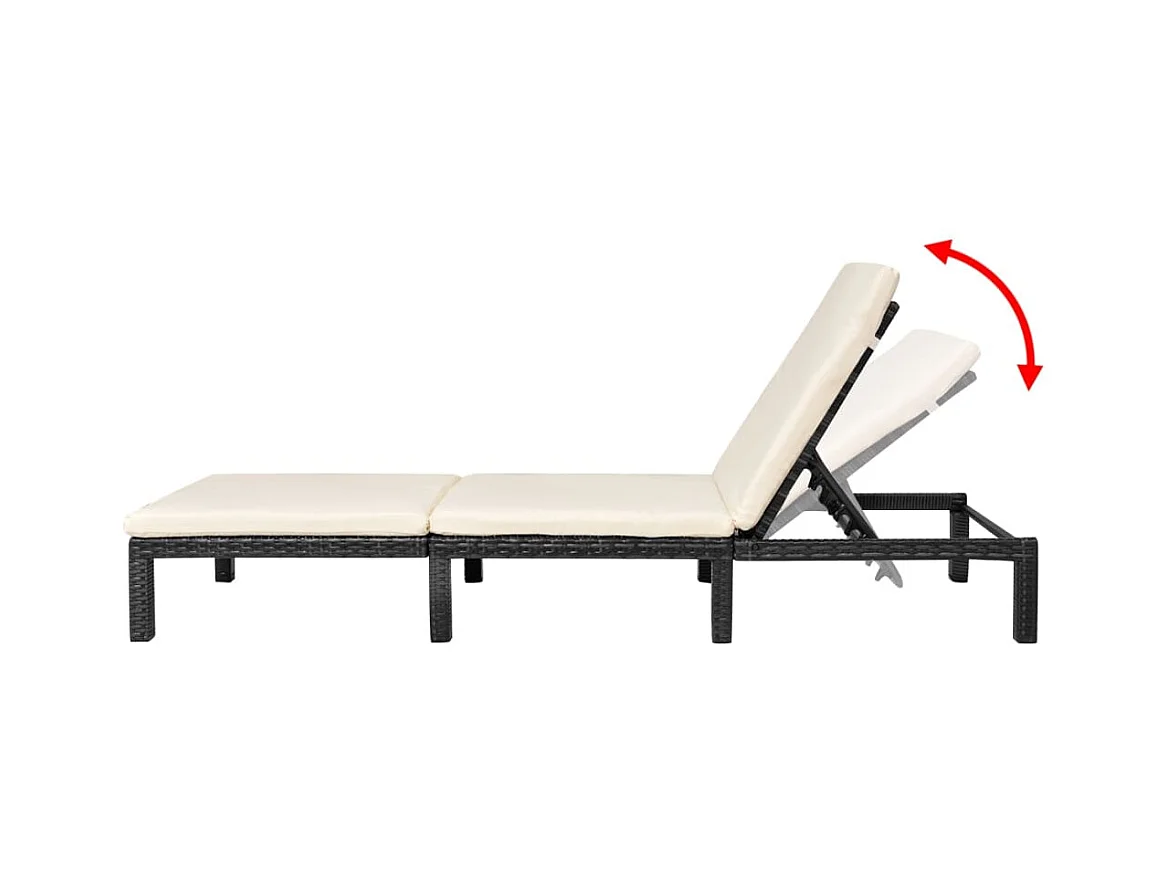 Chaise longue avec auvent et coussin Résine tressée Noir