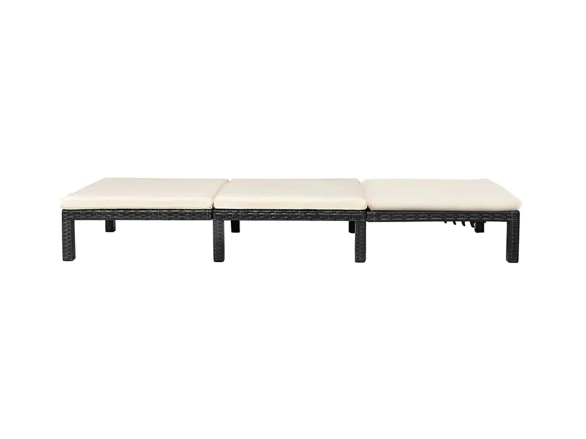 Chaises longues de jardin table à thé 3 pcs Résine tressée Noir